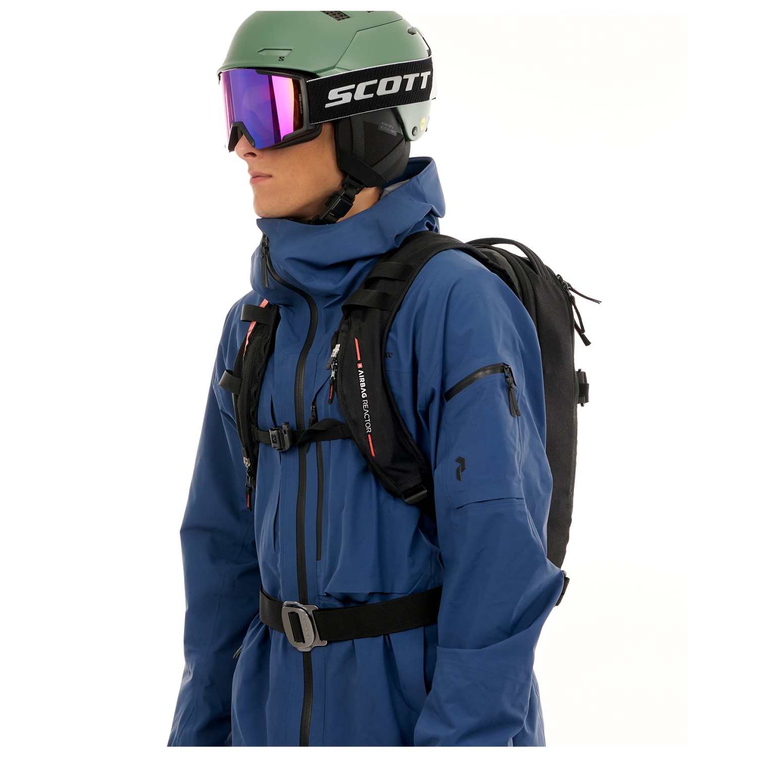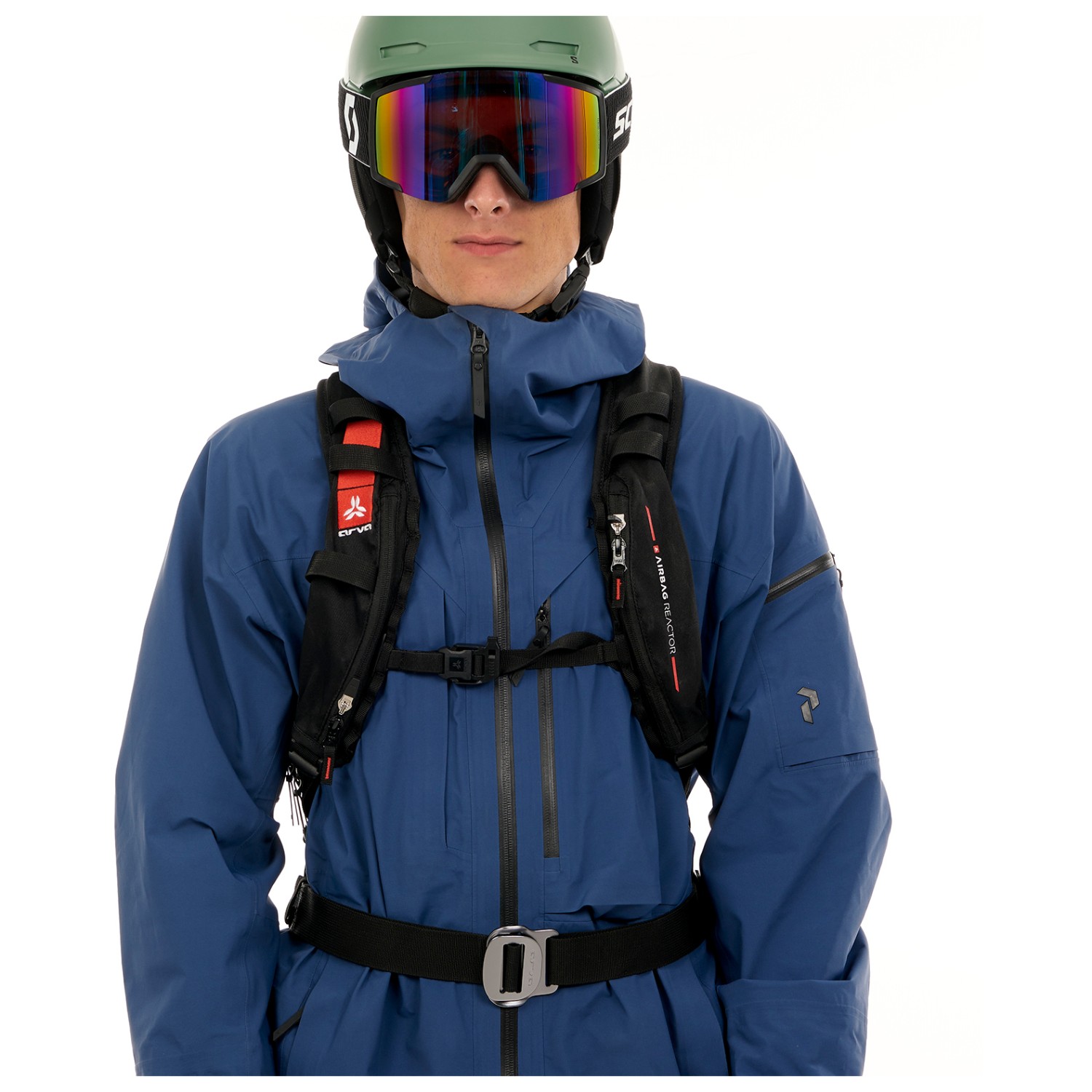 - compartimento para gafas, soporte para piolets/bastones, compartimento delantero, soporte para casco, compartimento para material antiavalancha, clip para llaves, soporte para esquís/snowboard, bolsillo en el tirante