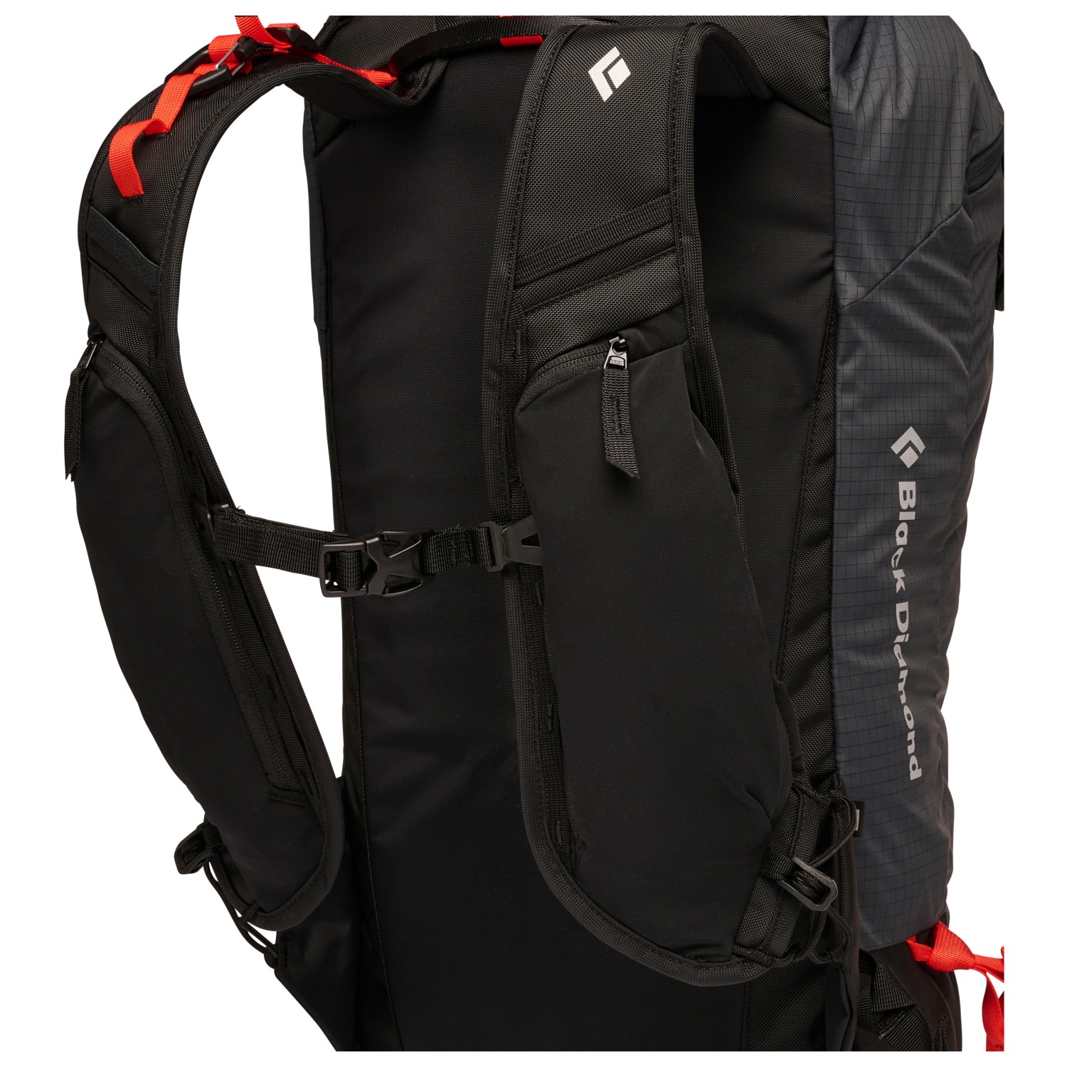 - soporte para piolets/bastones, soporte para casco, compartimento interior, compartimento para material antiavalancha, bolsillo exterior con cremallera, soporte para esquís/snowboard, bolsillo en el tirante