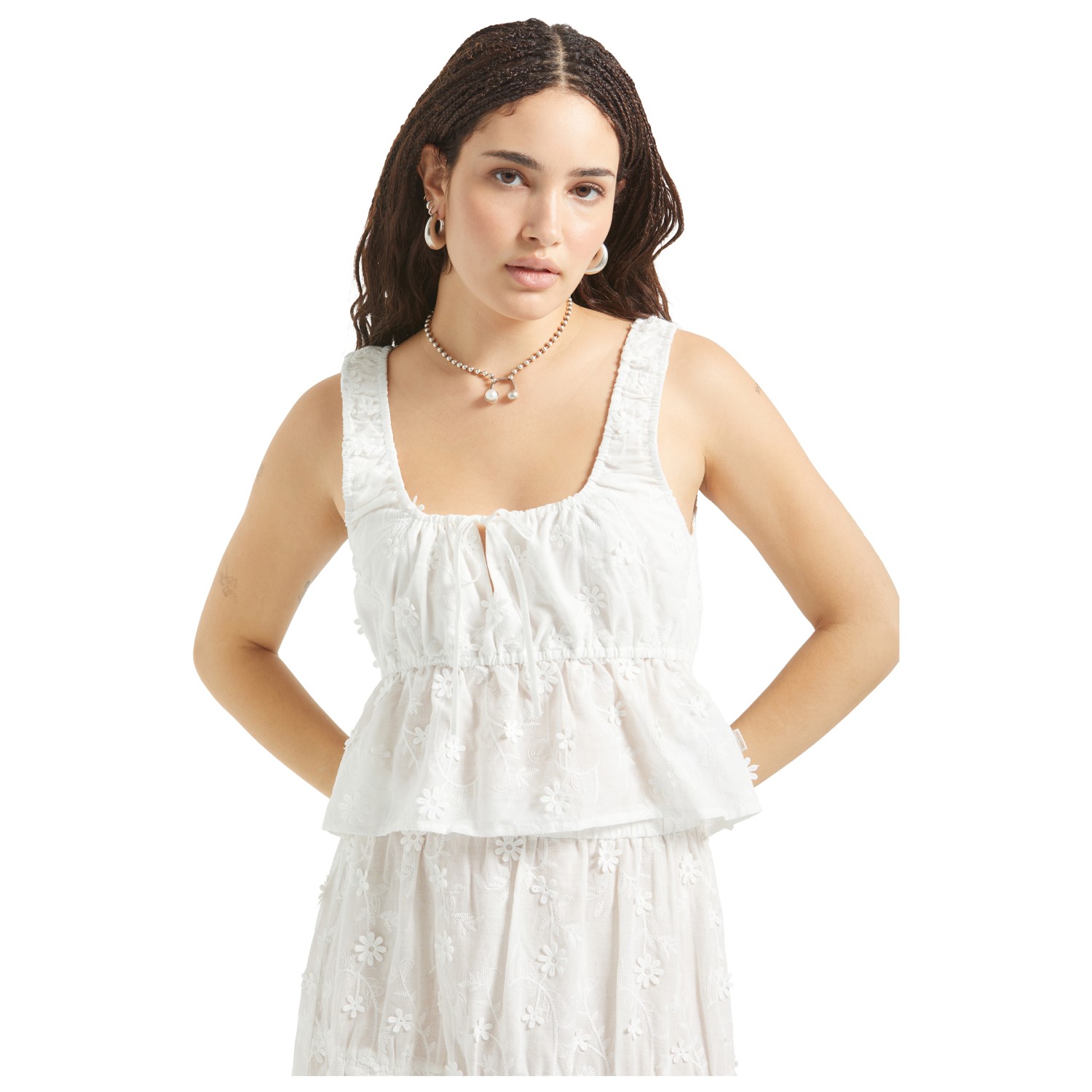 - cordón en el escote; corte recortado