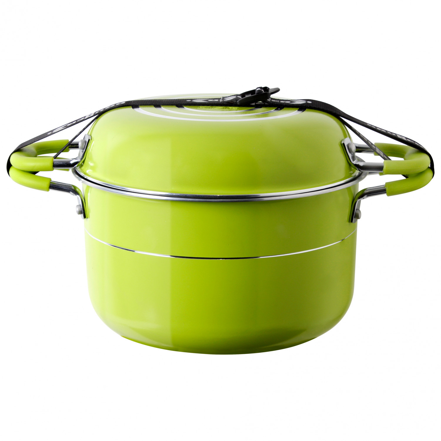 - 3 ollas; 1 sartén; 2 tapas; 1 mango; 1 correa de amarre