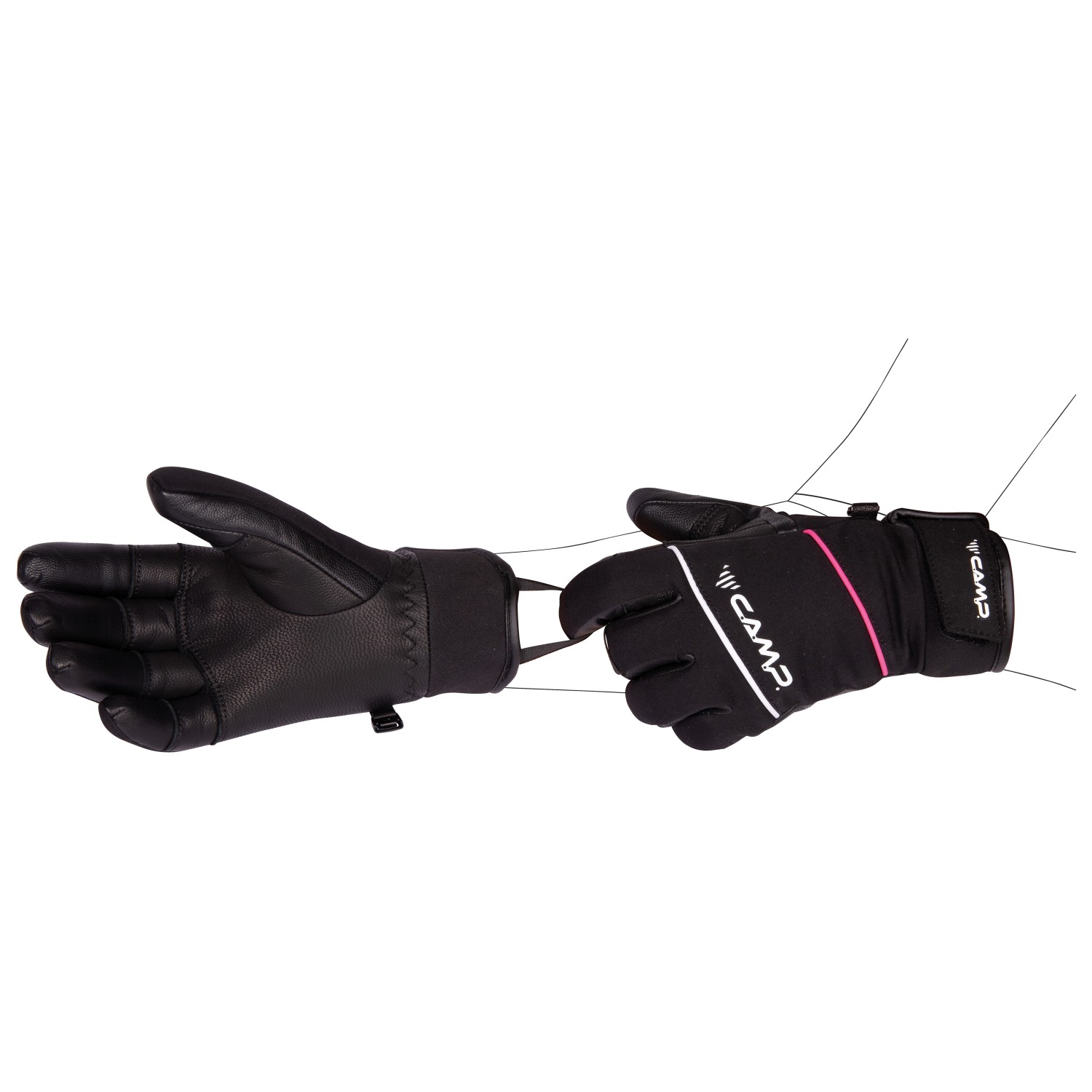 - diseño de dedos Dart; hebillas para conectar los guantes