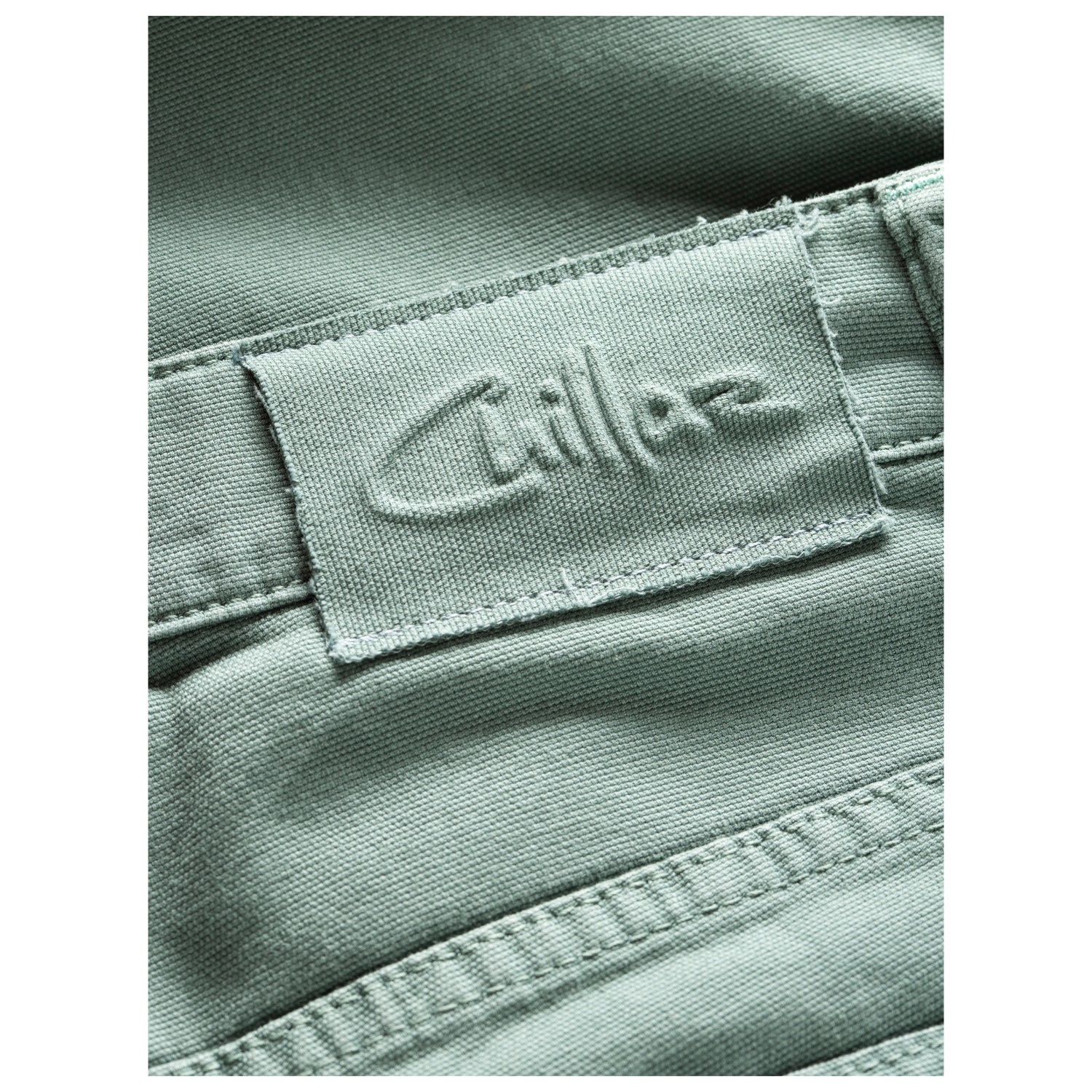 - Bajos elásticos, Presillas para cinturón, Costuras en contraste, Parche del logotipo