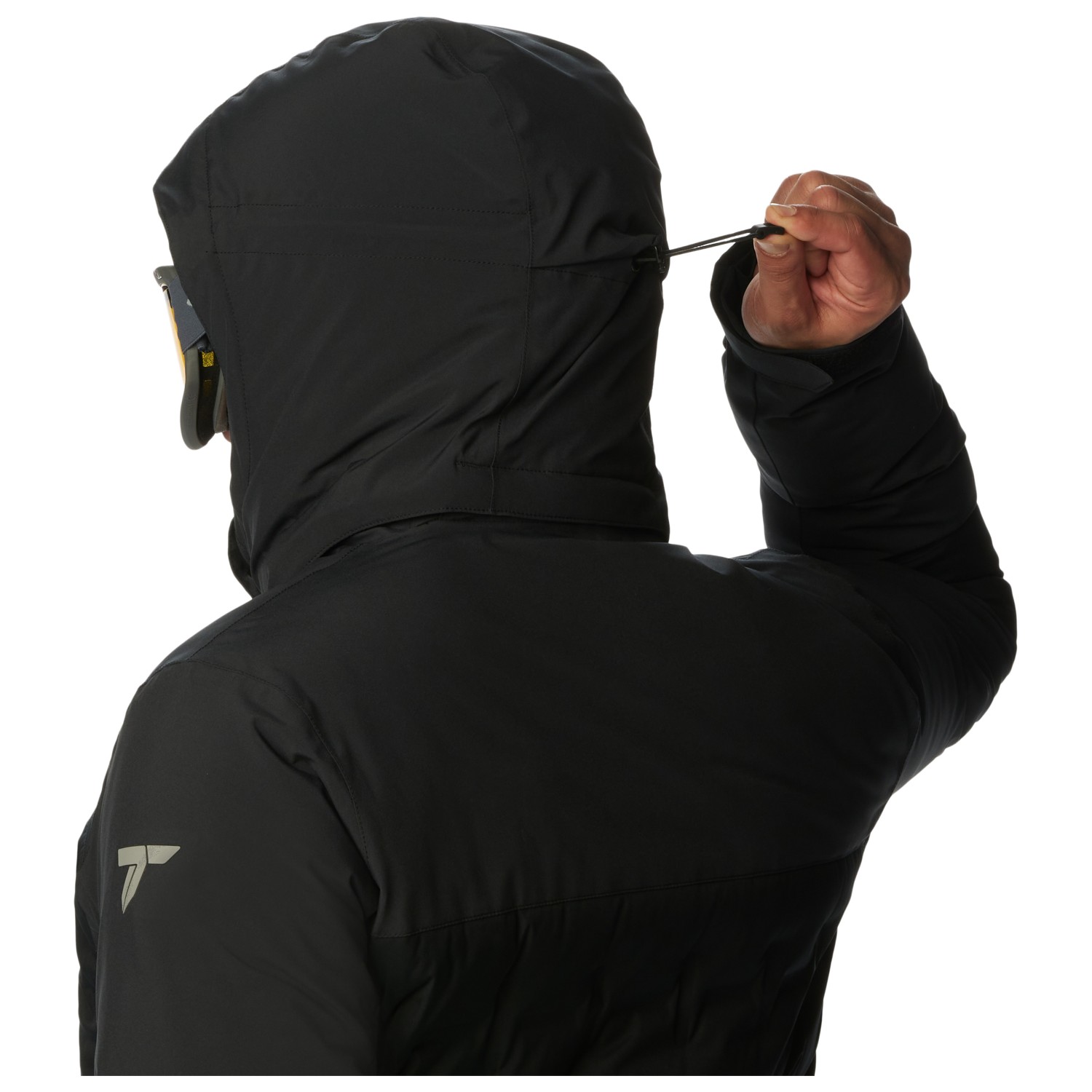 - Cierres de gancho y bucle en las mangas, Cordón de ajuste en el dobladillo, Faldón para nieve