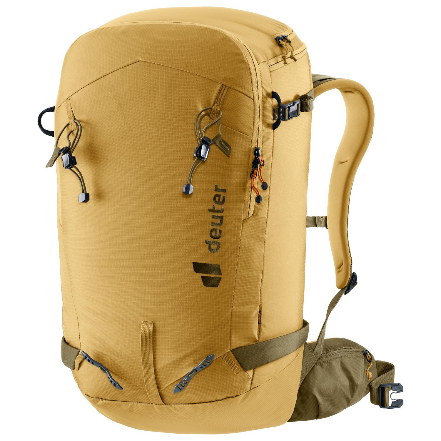 - compartimento para objetos de valor, 2 bolsillos en el cinturón lumbar, compartimento para gafas, soporte para gafas, soporte para piolets/bastones, red para casco, soporte para esquís/snowboard, porta cuerdas, lazos de material en el cinturón lumbar, soporte para raquetas de nieve, compartimento para ropa húmeda, clip para llaves