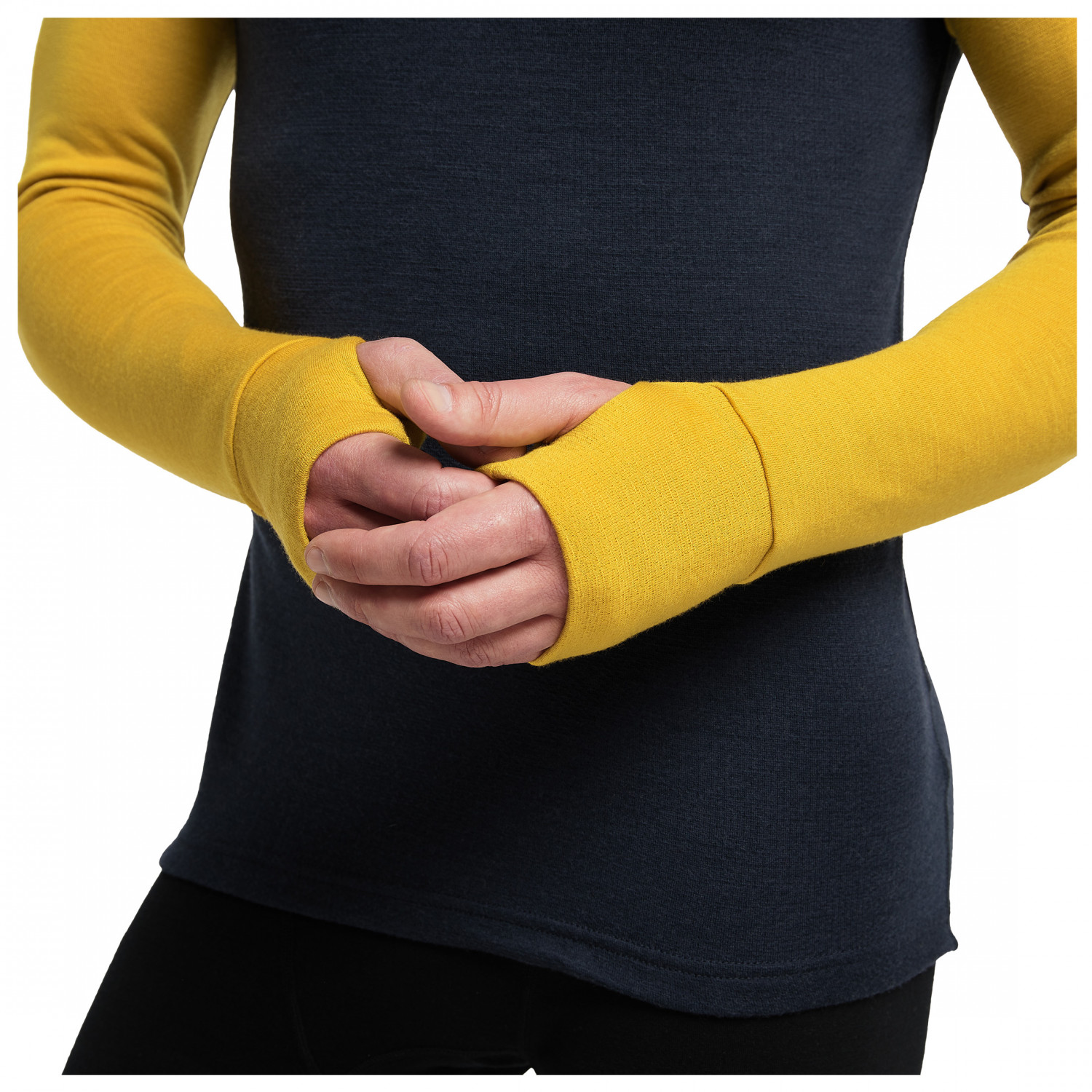 - presillas para los pulgares, costuras planas, Mangas raglán, espalda más larga