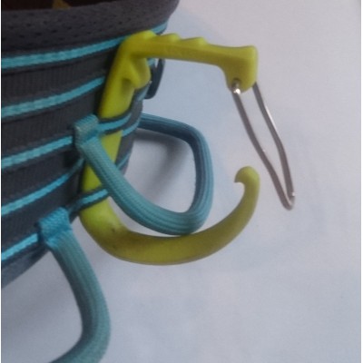 Portamaterial ligero y de buen material con el que se opera bastante suavemente aunque quizas le haga falta ser algo mas alargado para permitir meter mas material y que el anclaje al arnes se mejorada un poco mas ser mas fácil y rigido.