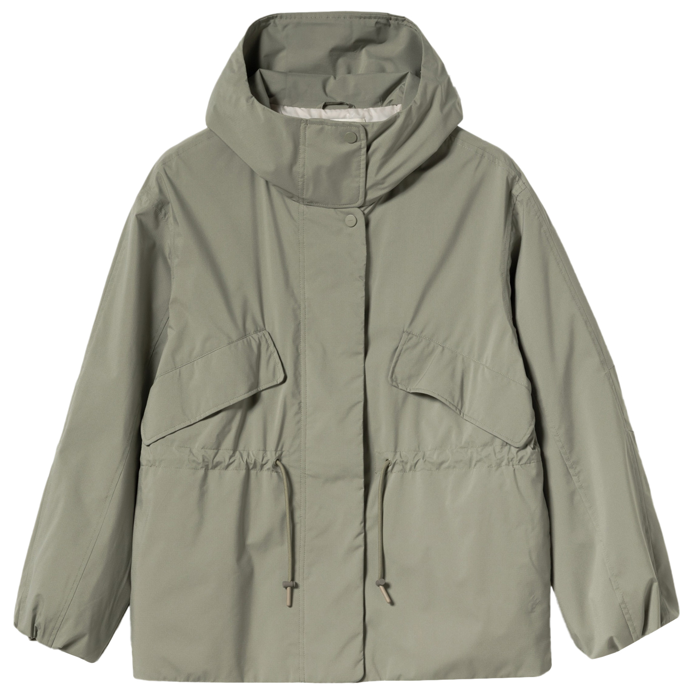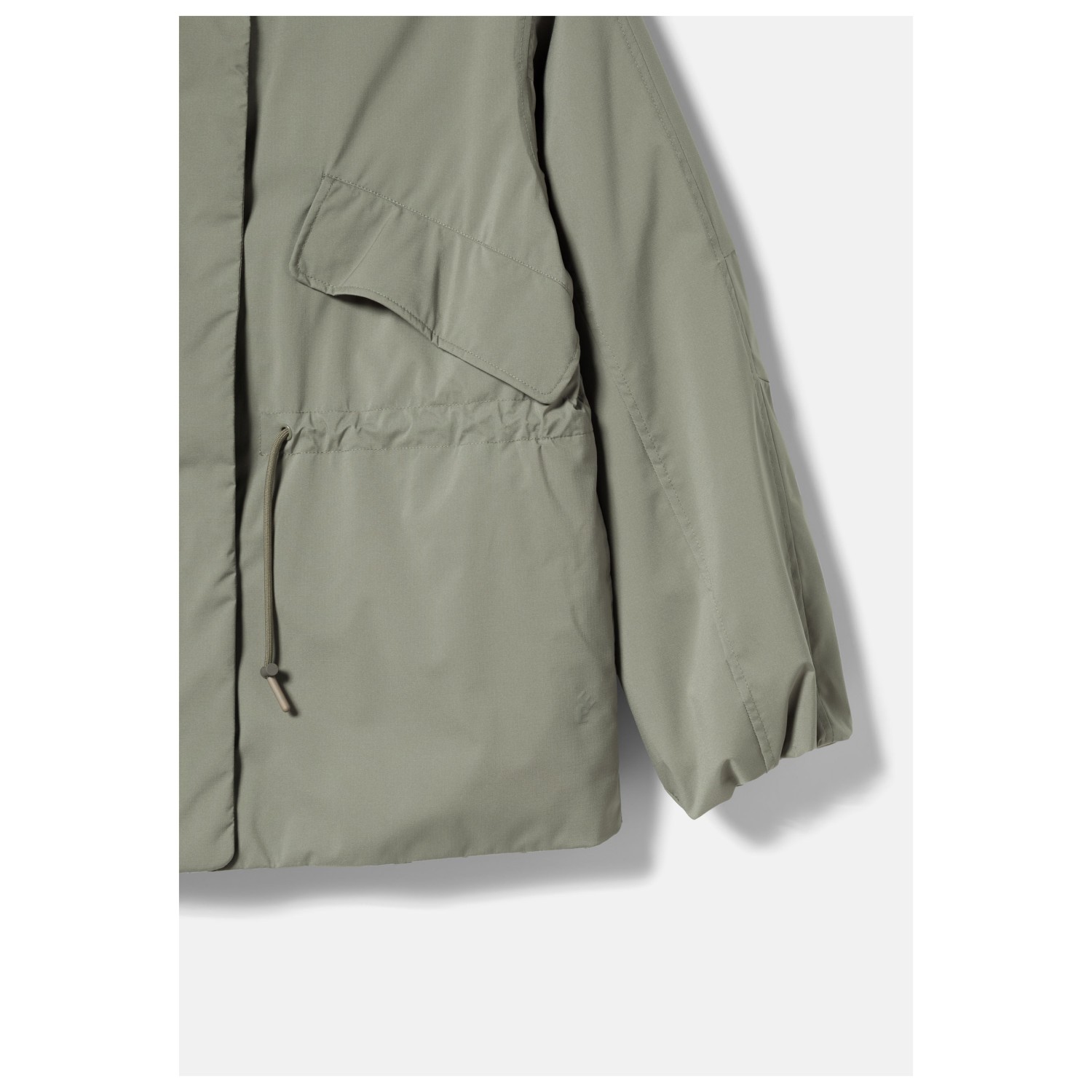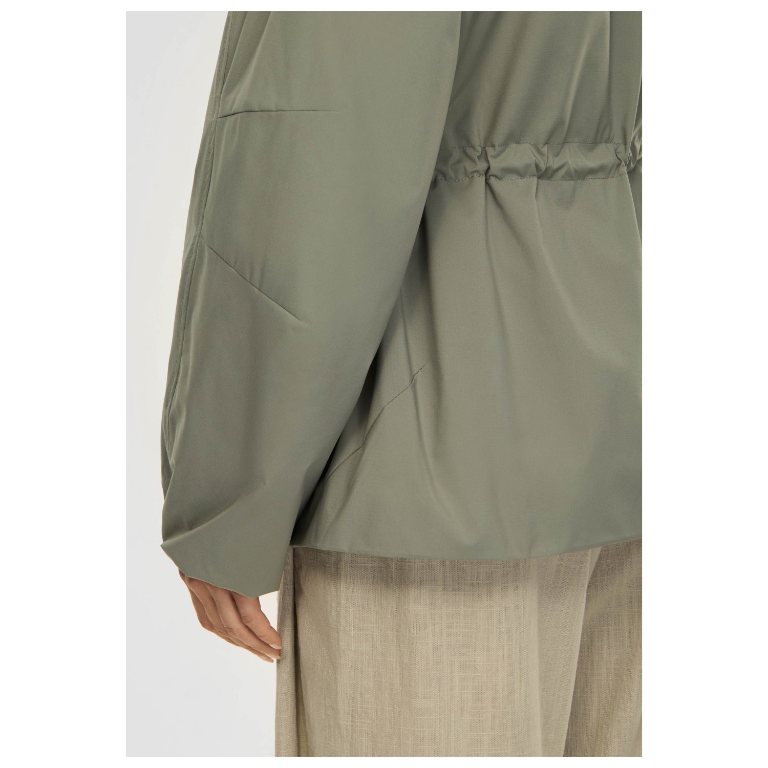 - Cordón de ajuste en la cinturilla, mangas preformadas