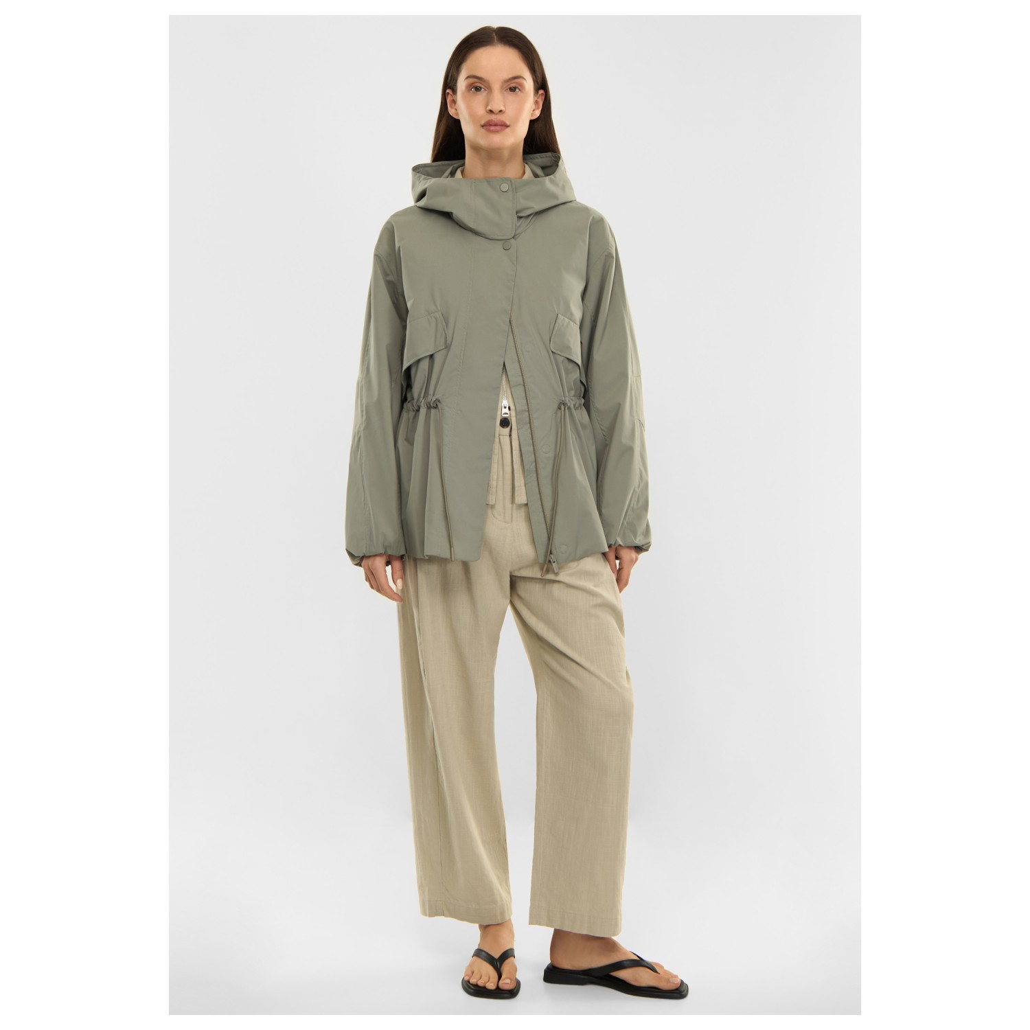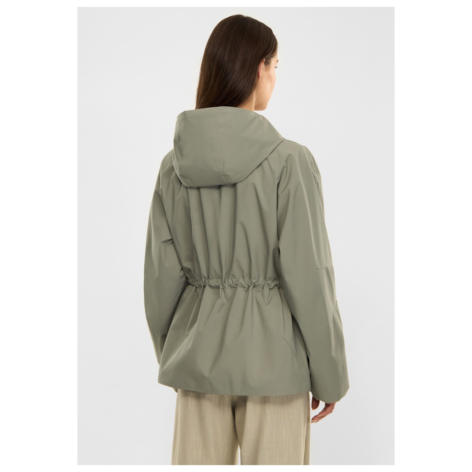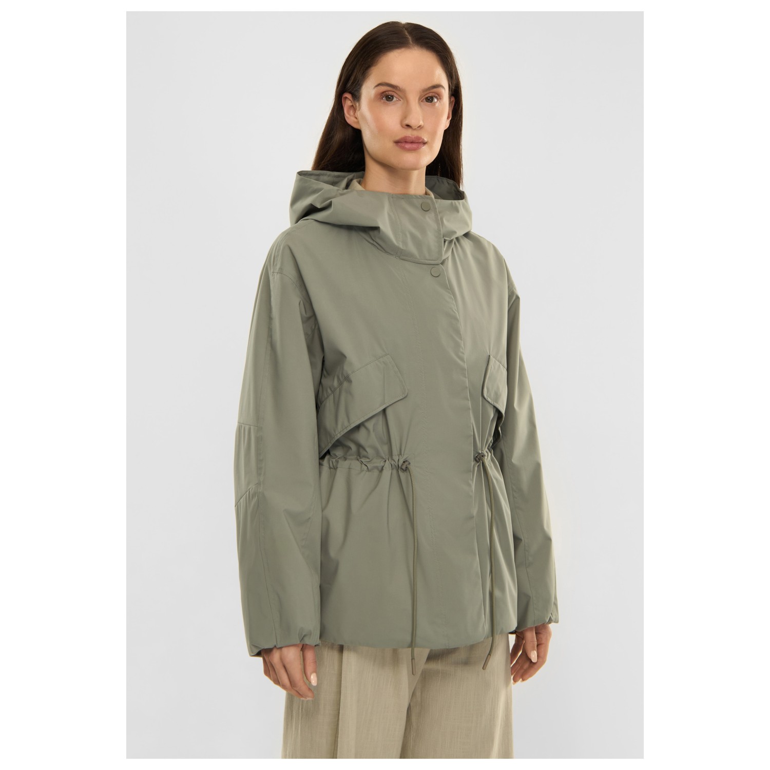 - Cordón de ajuste en la cinturilla, mangas preformadas