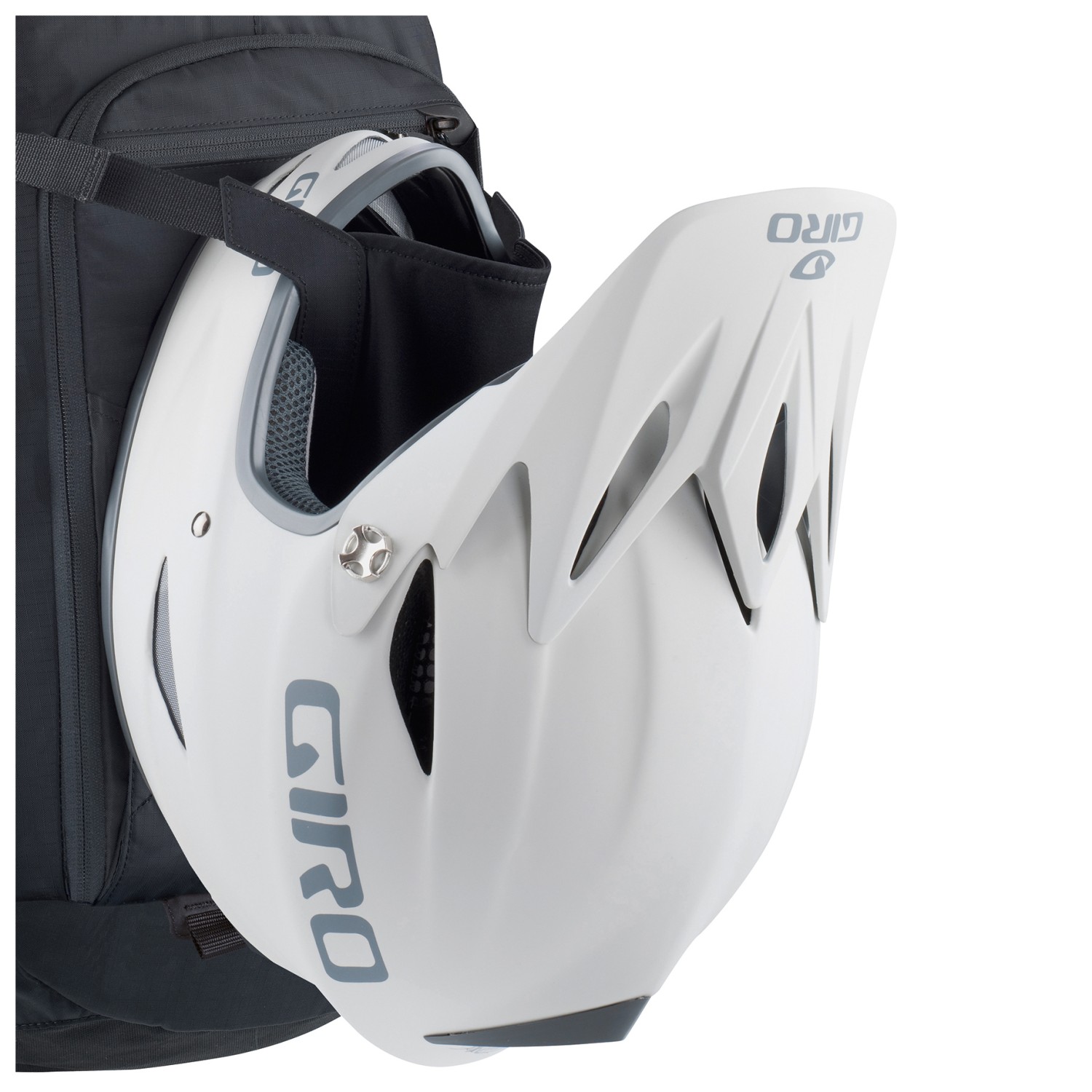 - compartimento para gafas, soporte para casco, bolsillo en el cinturón lumbar, clip para llaves, compartimento portaherramientas