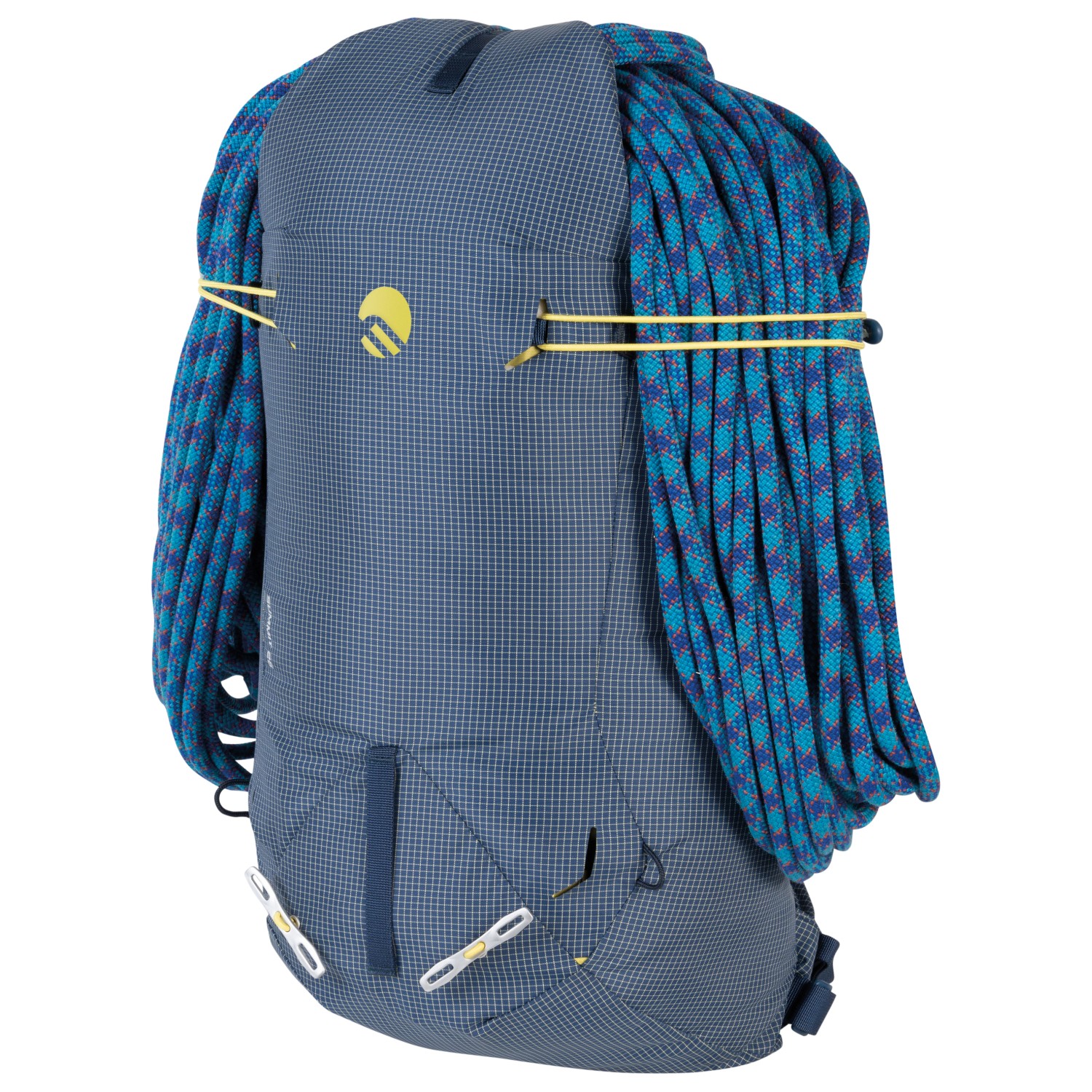 - correas de fijación en la parte delantera, soporte para piolets/bastones, soporte para casco, bolsillo exterior con cremallera, porta cuerdas