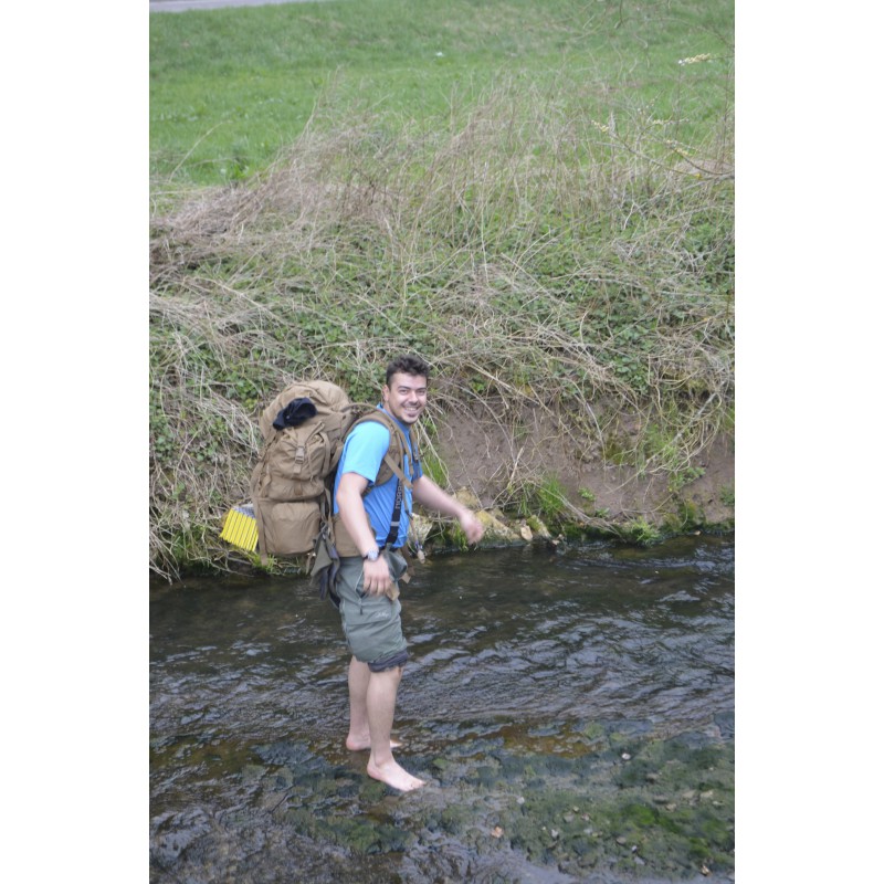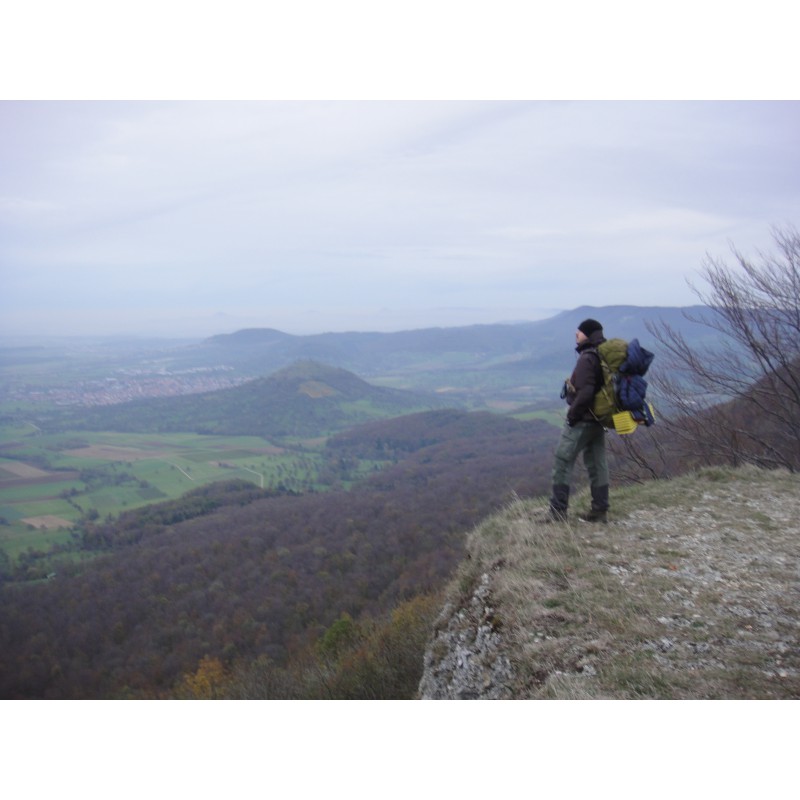 - soporte para piolets/bastones, tapa desmontable, 2 bolsillos laterales con cremallera, 2 bolsillos en el cinturón lumbar, 2 portabidones