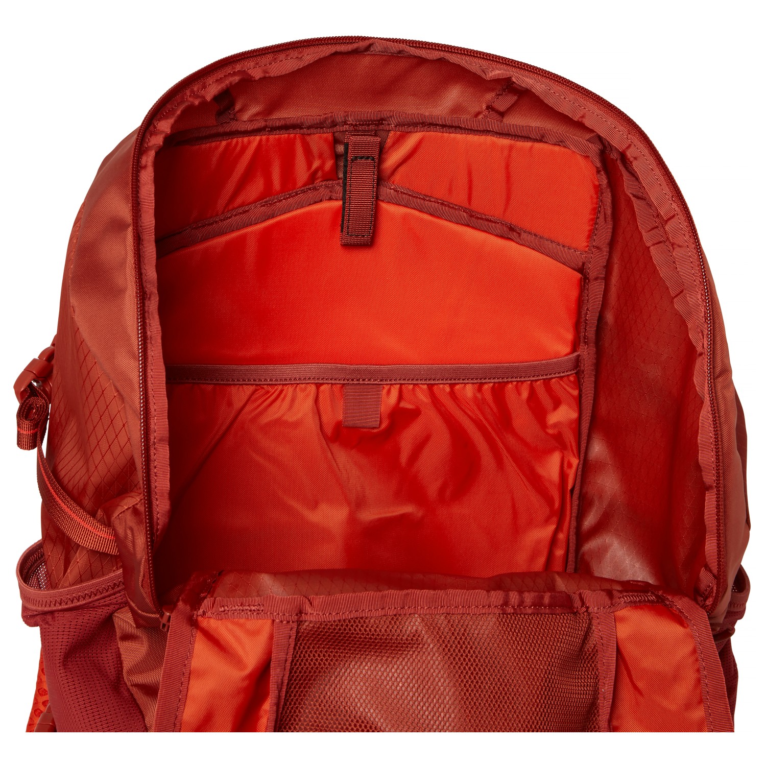 - 2 bolsillos en el cinturón lumbar, 2 compartimentos laterales, fijación para bastones de trekking, daisy chain, compartimento interior de malla, clip para llaves