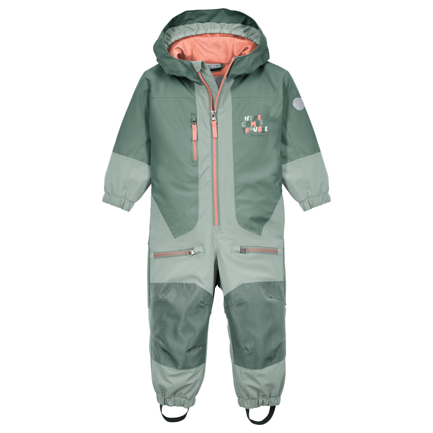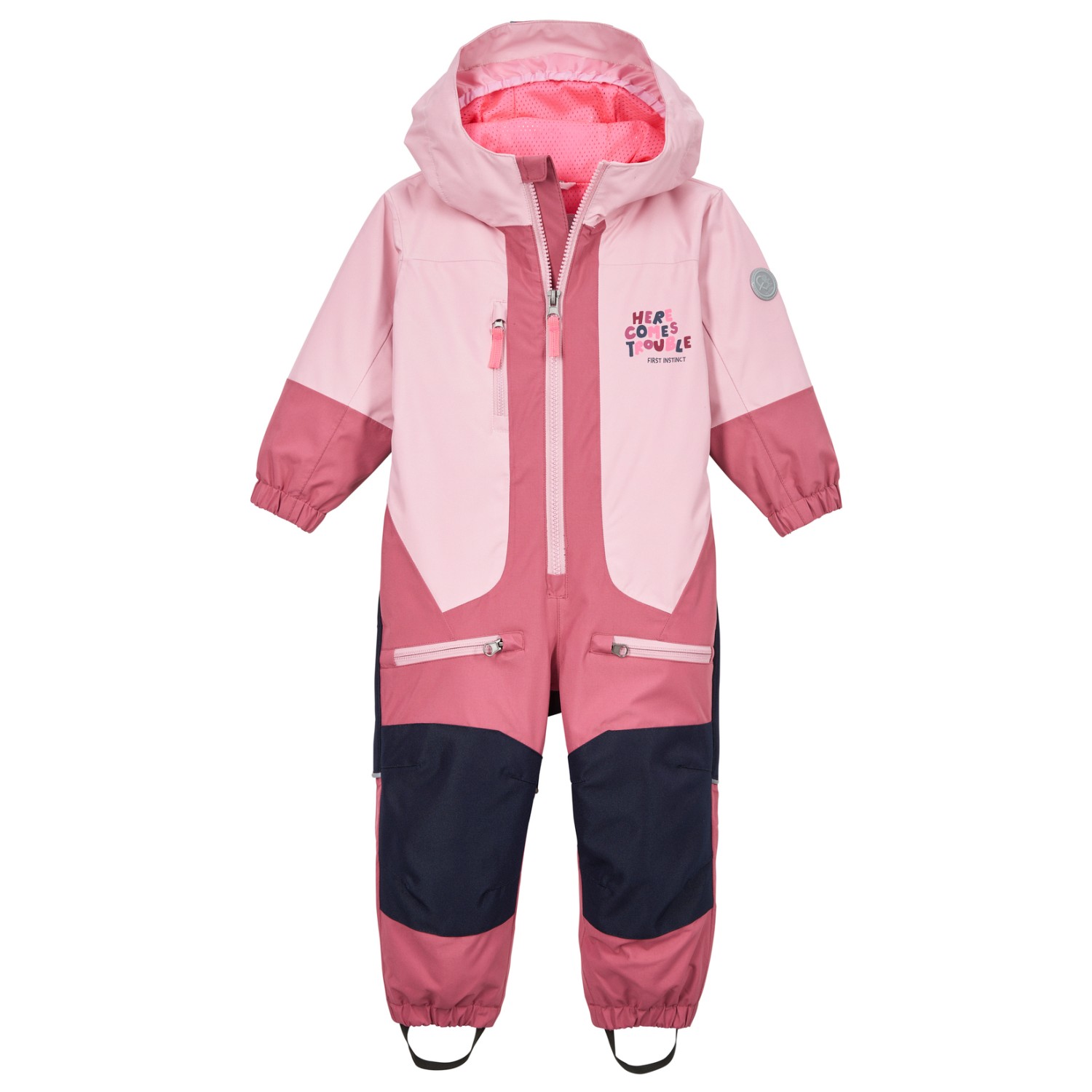 - Puños elásticos, Bajos elásticos, Correas para los pies, Parche del logotipo, refuerzo en la entrepierna