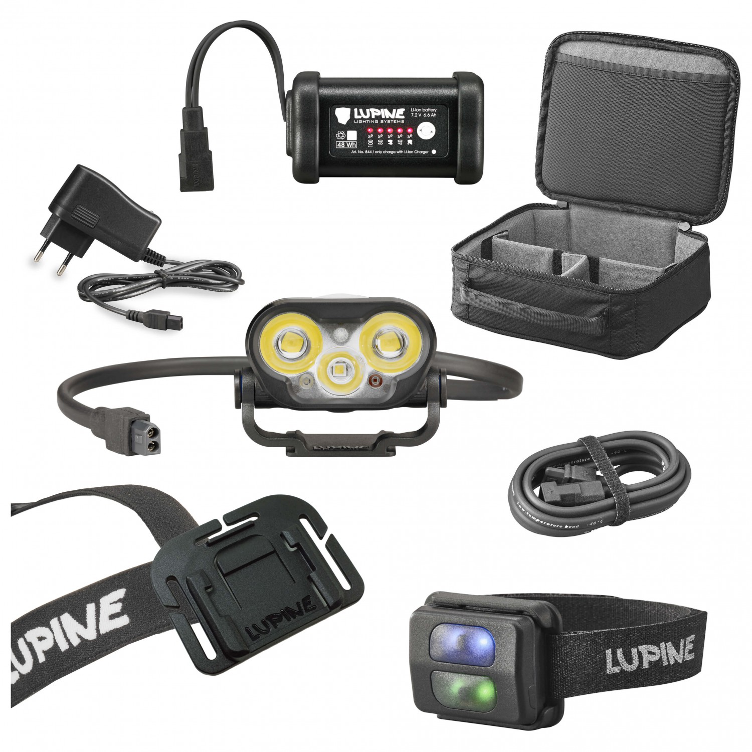 - incl. cabezal de la lámpara Blika R; botón de radio bluetooth de 2 direcciones; soporte de radio; cargador Wiesel; instrucciones