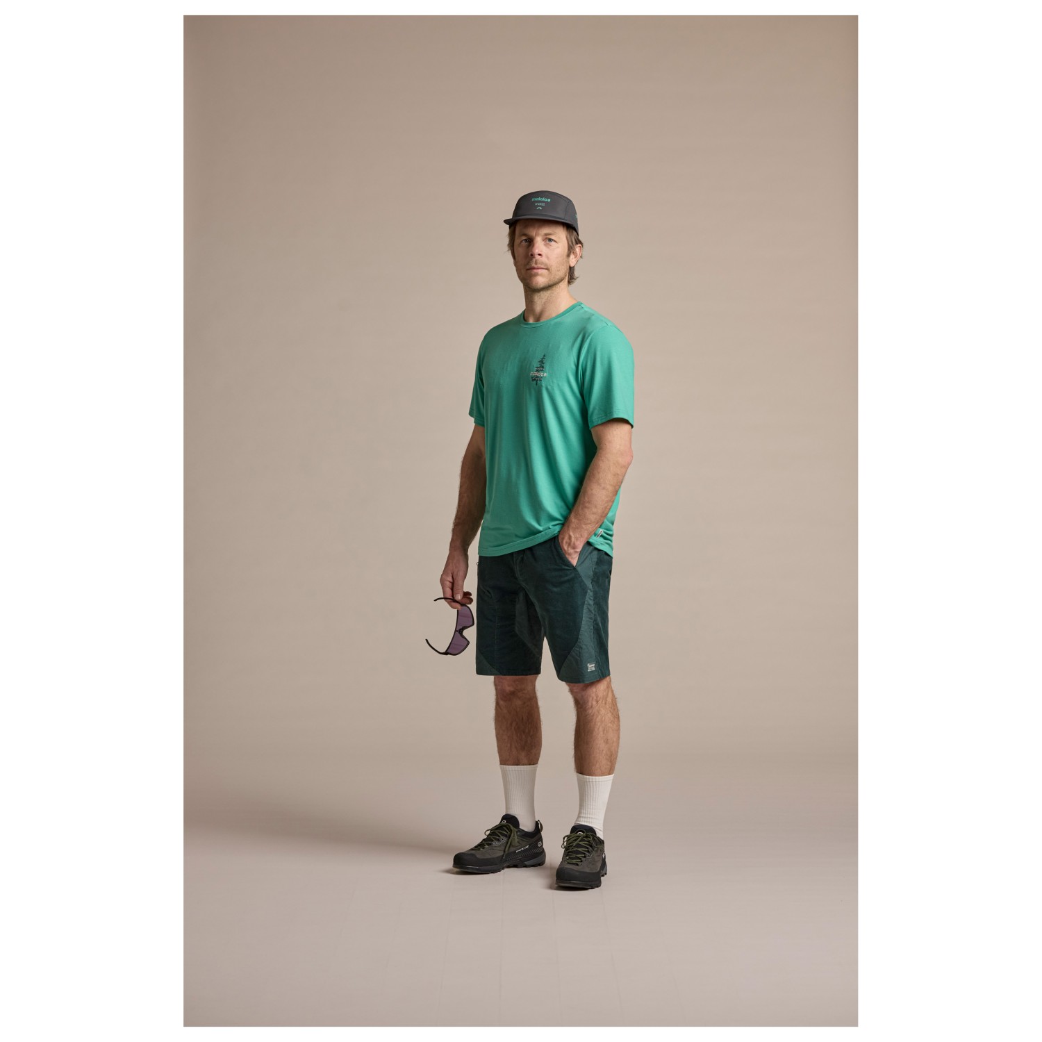 - 80% poliéster (reciclado), 15% cáñamo, 5% elastano