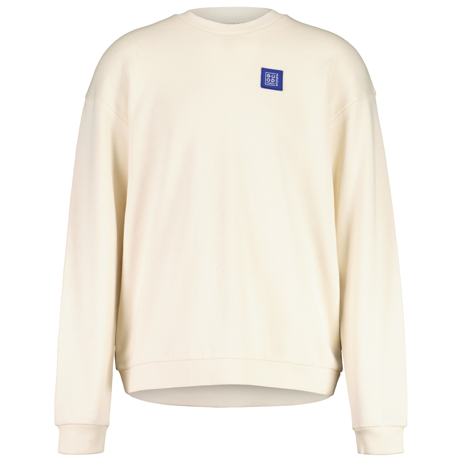 - Puños elásticos, Dobladillo elástico, Parche del logotipo, cuello redondo
