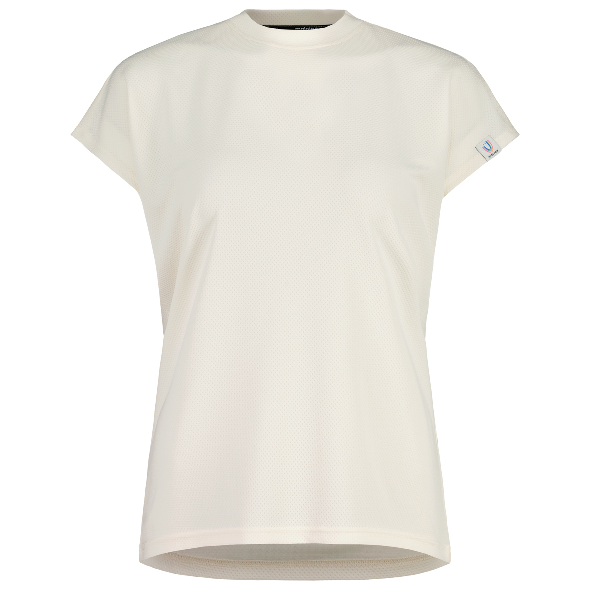 - Parche del logotipo, cuello redondo, costuras de los hombros desplazadas