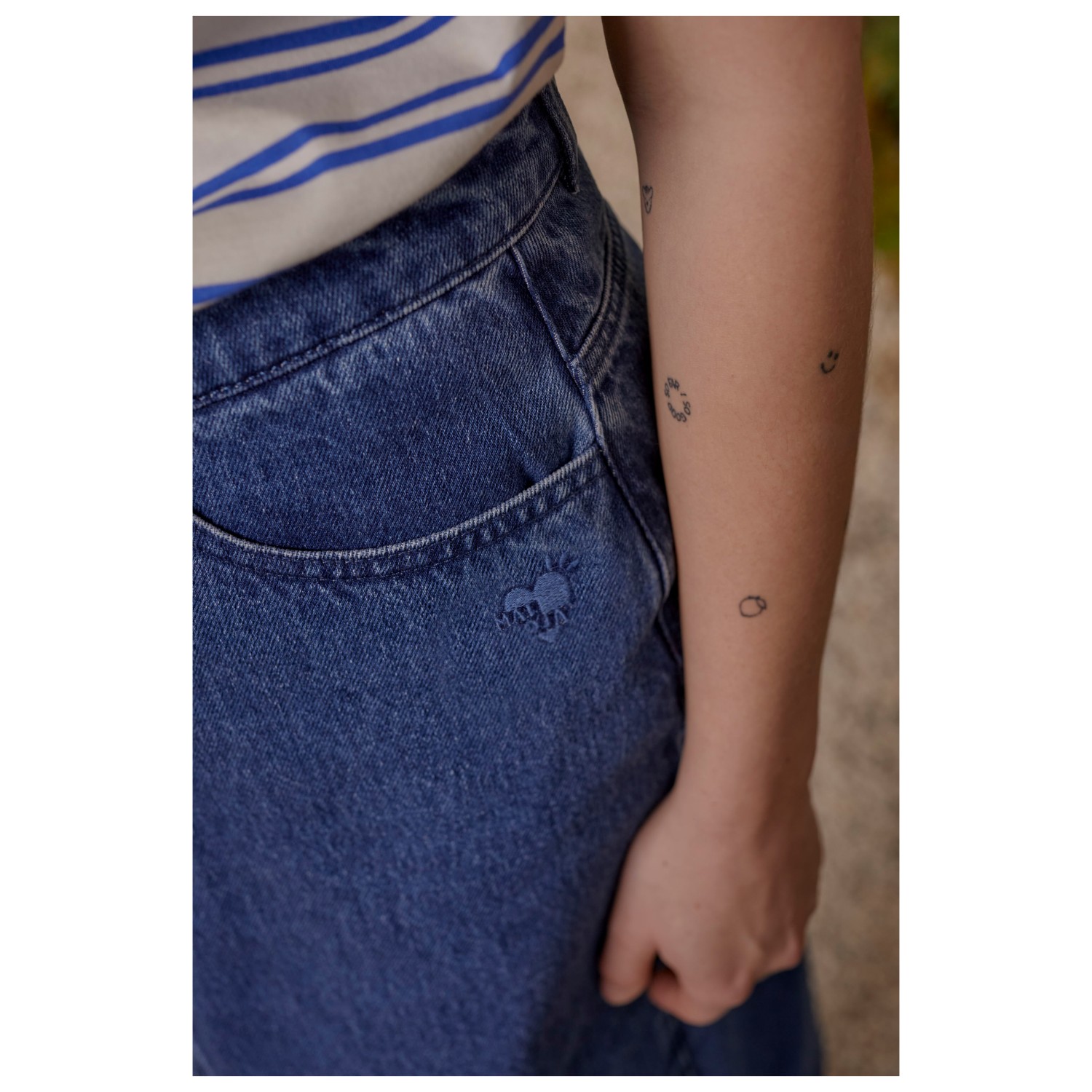 - Parche del logotipo, abertura en la parte trasera del dobladillo