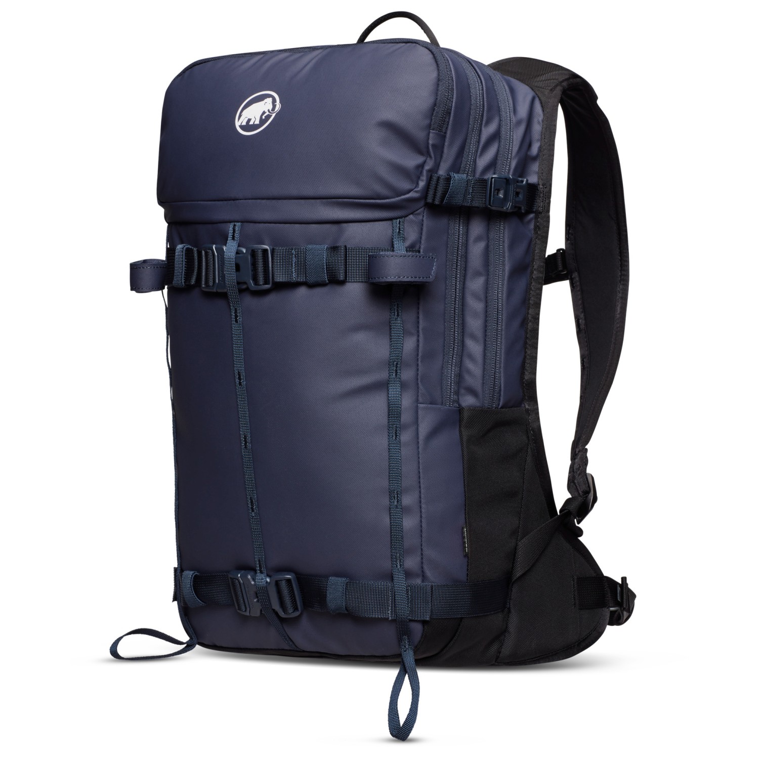 - soporte para piolets/bastones, compartimento para material antiavalancha, soporte para esquís/snowboard