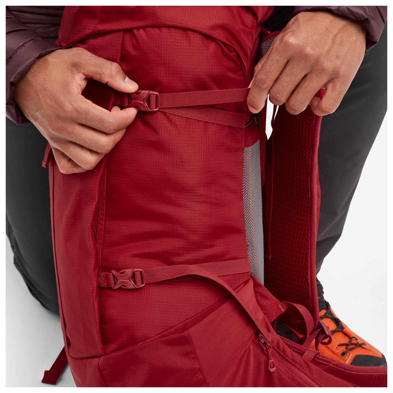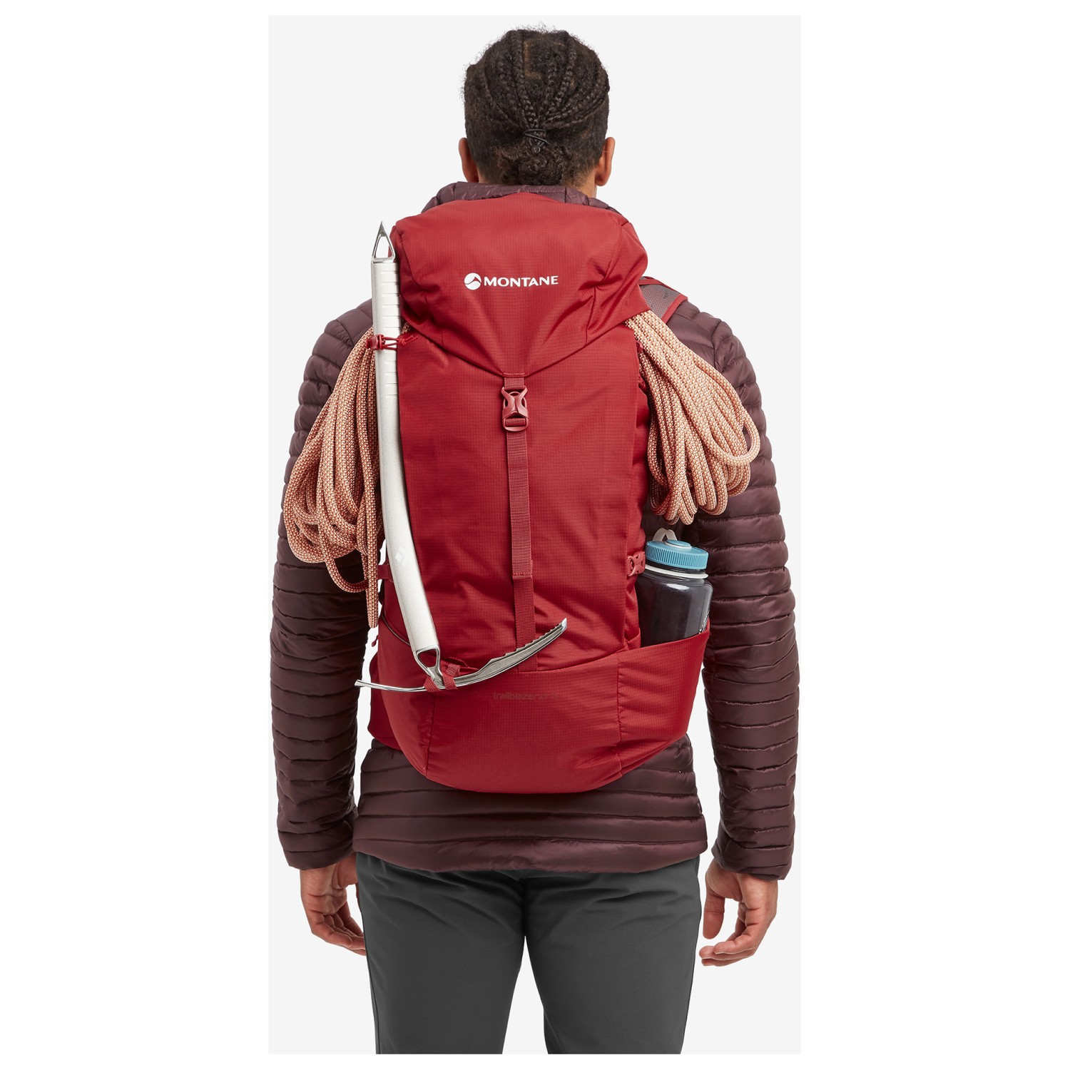 - soporte para piolets/bastones, daisy chain, bolsillo delantero con cremallera, bolsillo en el tirante, 2 bolsillos exteriores con cremallera