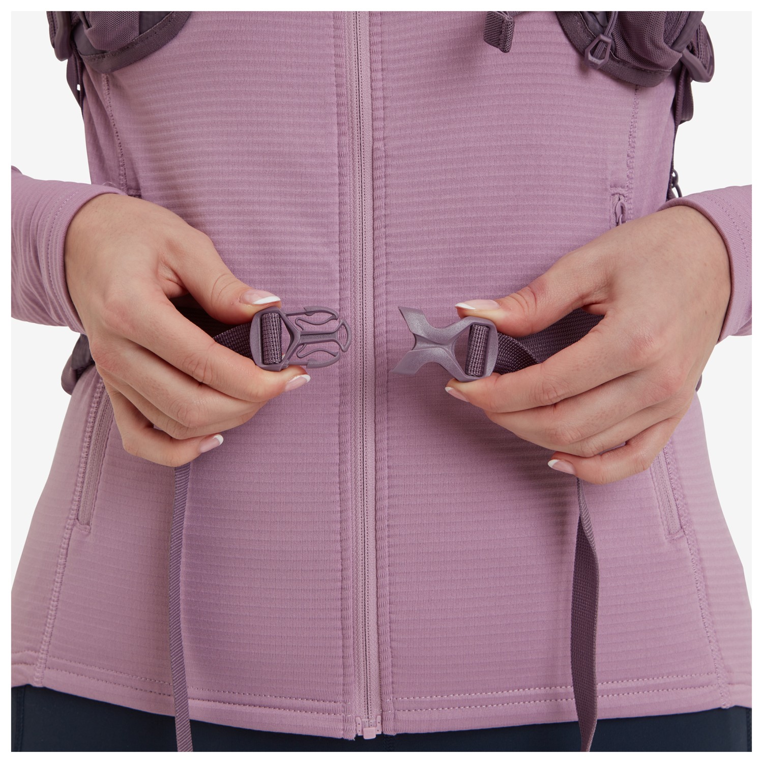 - sujeción con goma elástica, fijación para bastones de trekking, clip para llaves, 2 bolsillos exteriores con cremallera, compartimento elástico