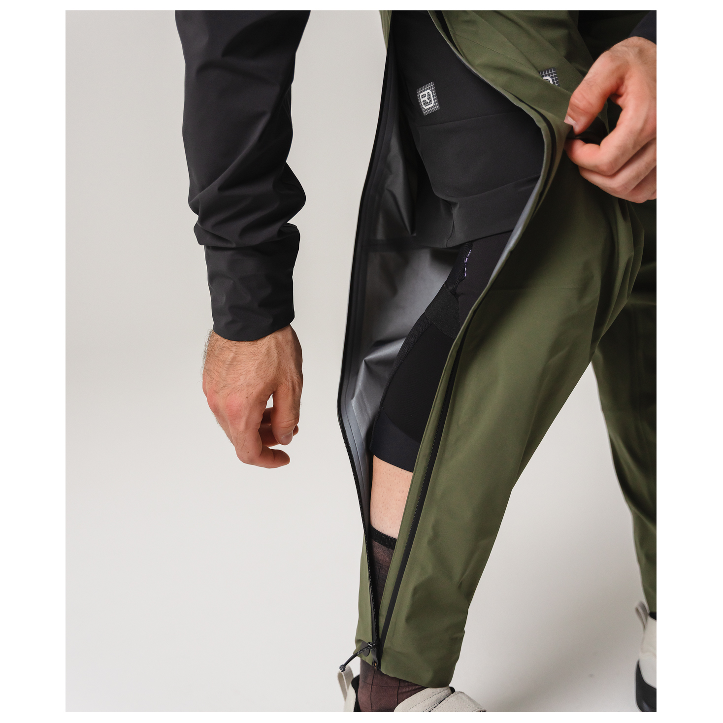 - a través de las cremalleras laterales de los muslos