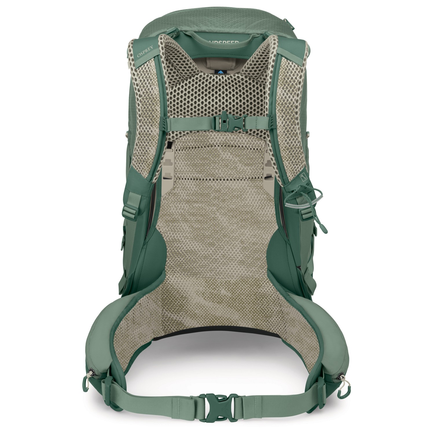 - compartimento para gafas, compartimento de la tapa, soporte para piolets/bastones, clip para llaves