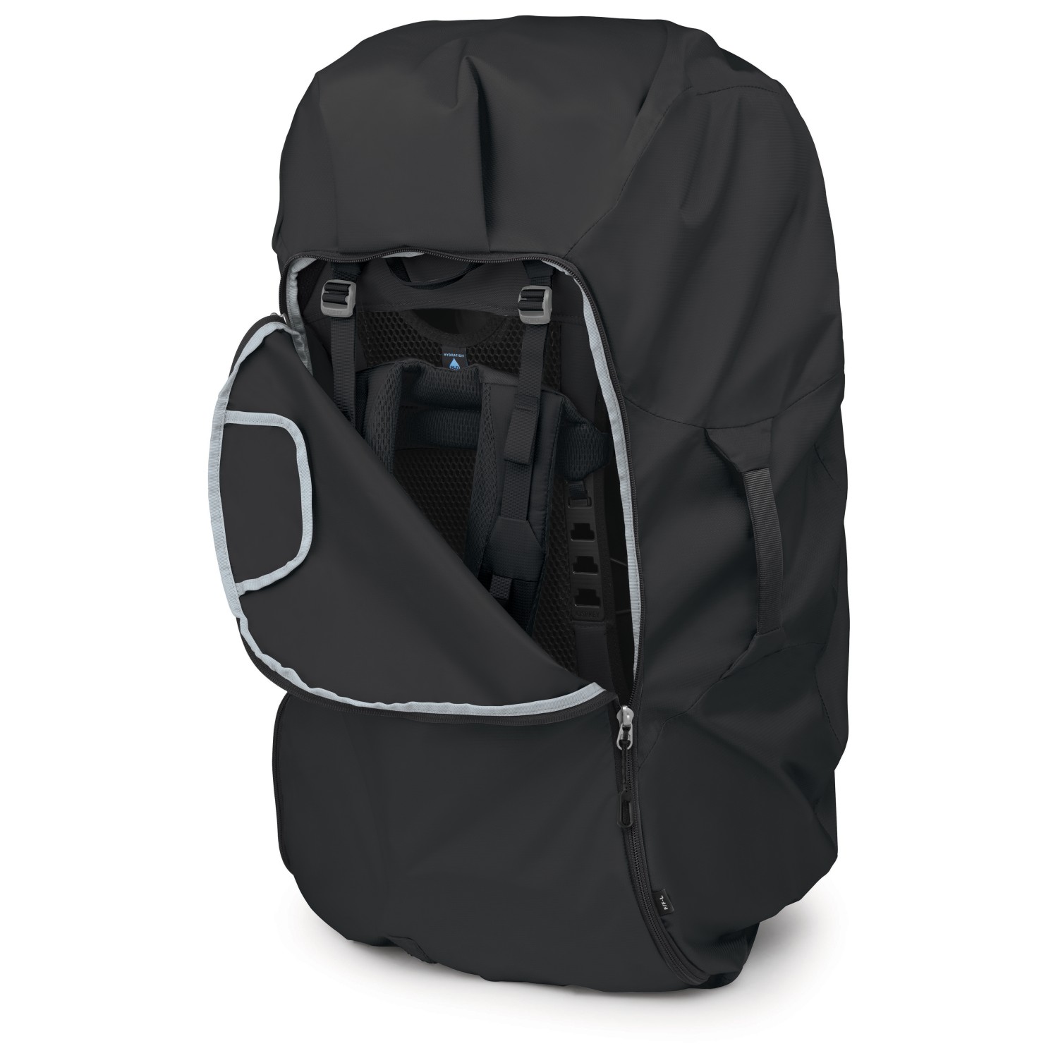 - 2 bolsillos en el cinturón lumbar, 2 compartimentos laterales de malla, compartimento inferior, compartimento delantero, compartimento interior