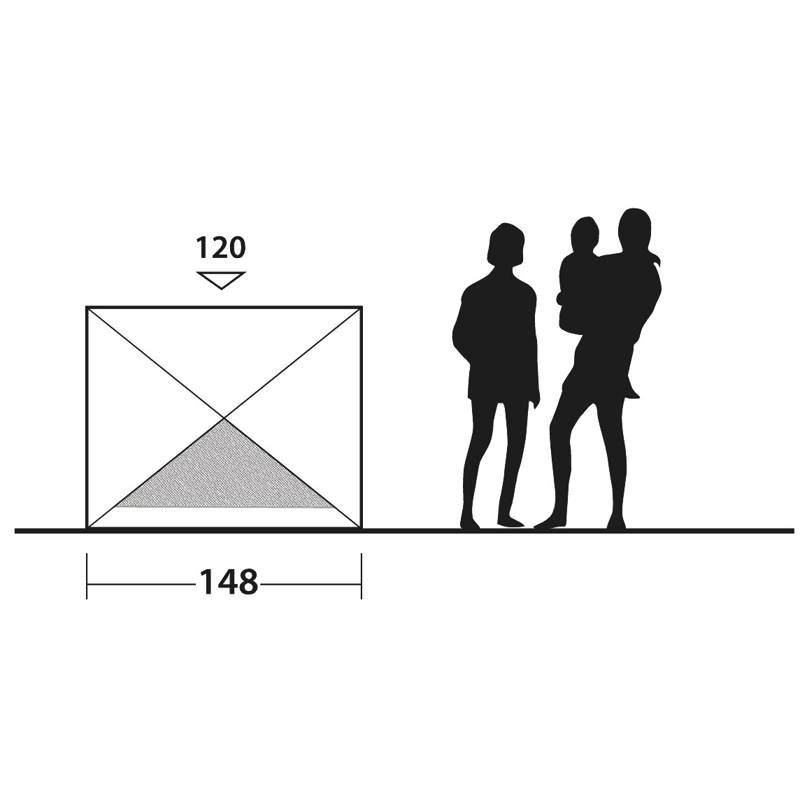 - long. 148 x anch. 210 x alt. 120 cm