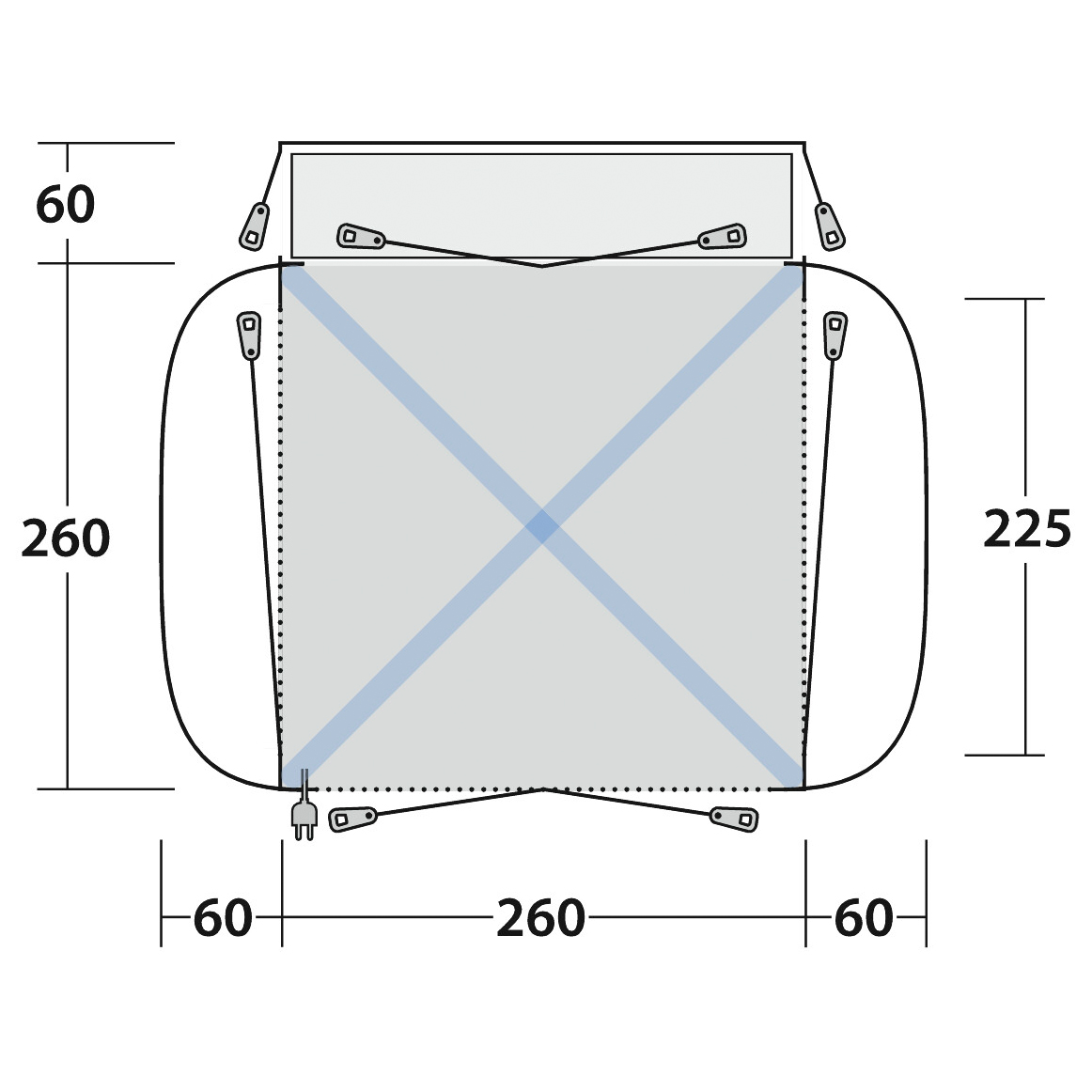 - long. 225 x anch. 225 x alt. 200 cm