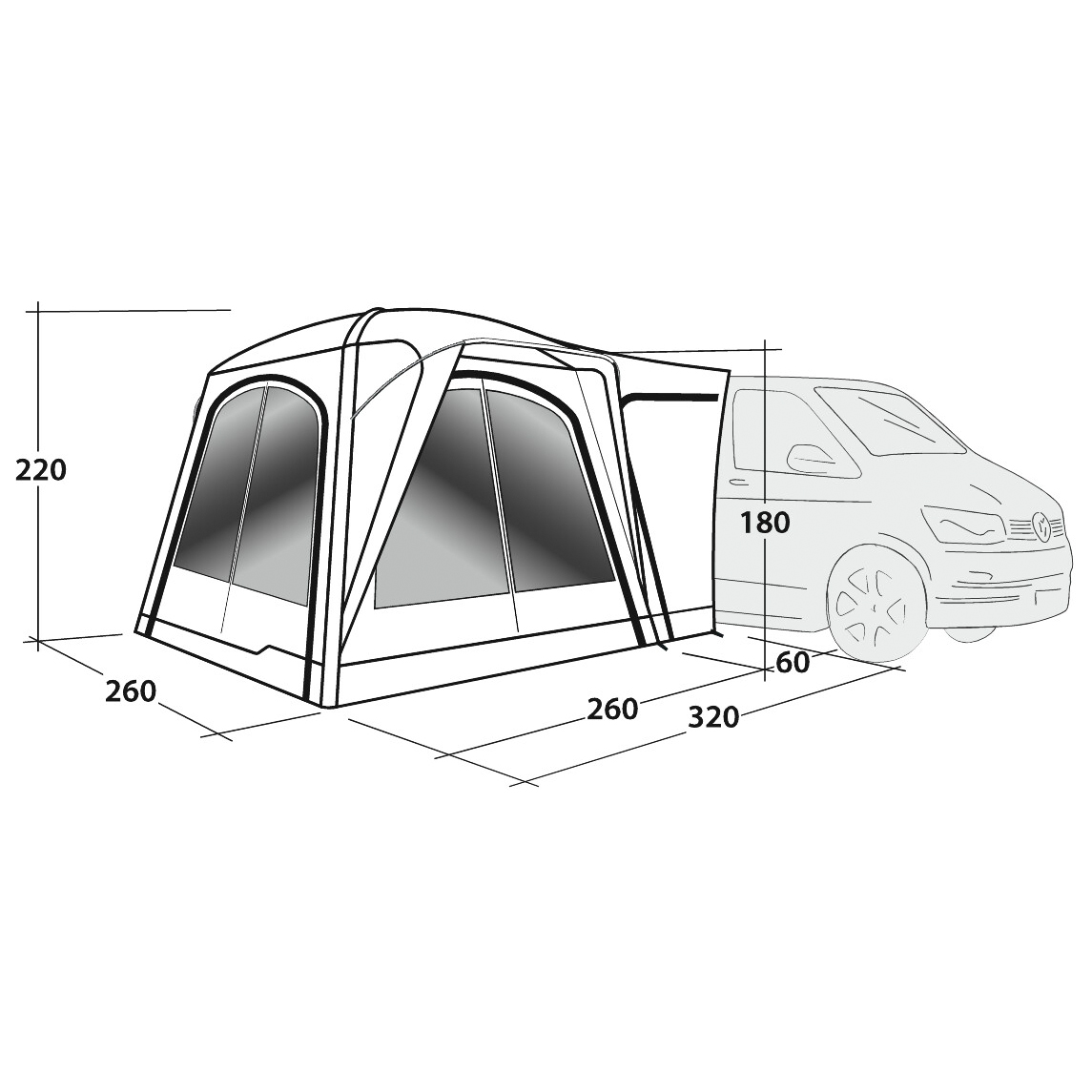 - long. 260 x anch. 260 x alt. 220 cm