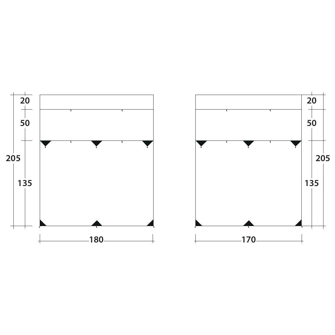 - long. 180 x alt. 205 cm; long. 170 x alt. 205 cm