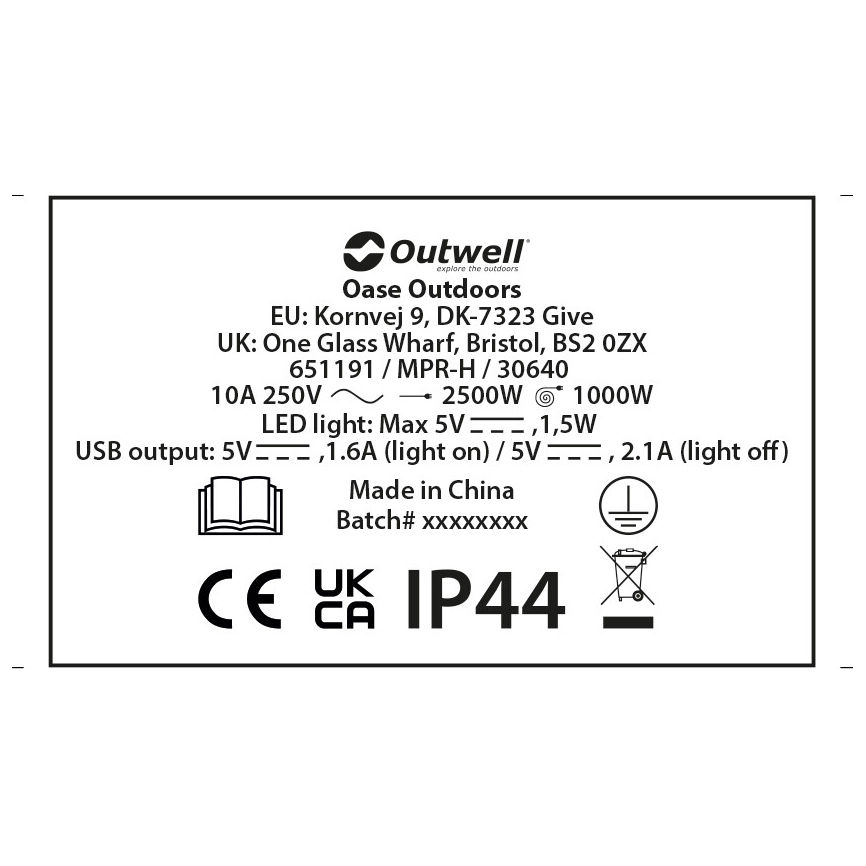 Outwell - Mensa Mains 3Way Roller Kit w/ USB/Light - Tambor de cable