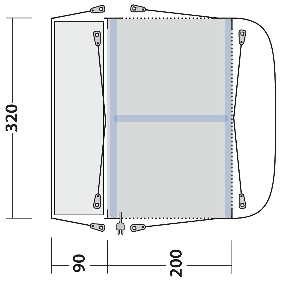 - long. 200 x anch. 320 x alt. 220 cm