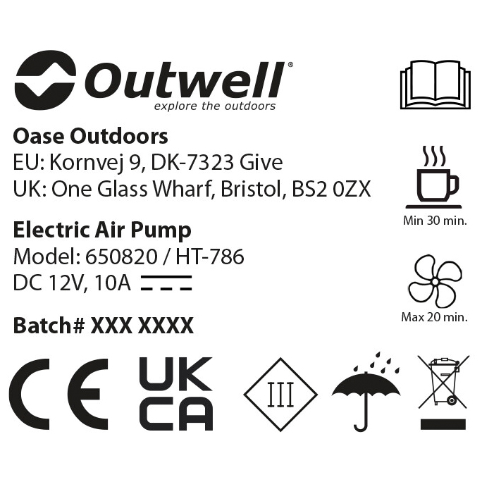 Outwell - Squall Tent Pump 12V - Bomba de aire