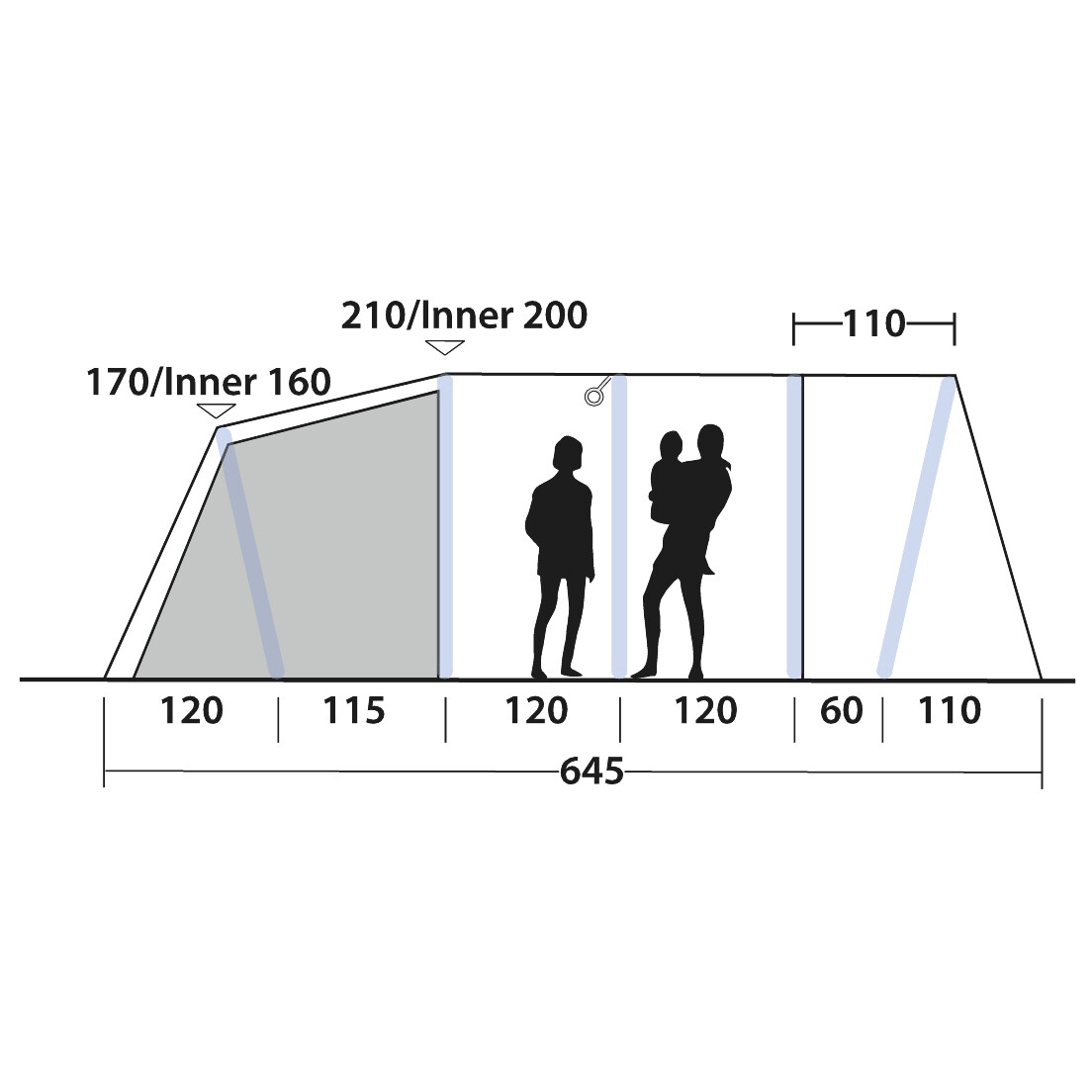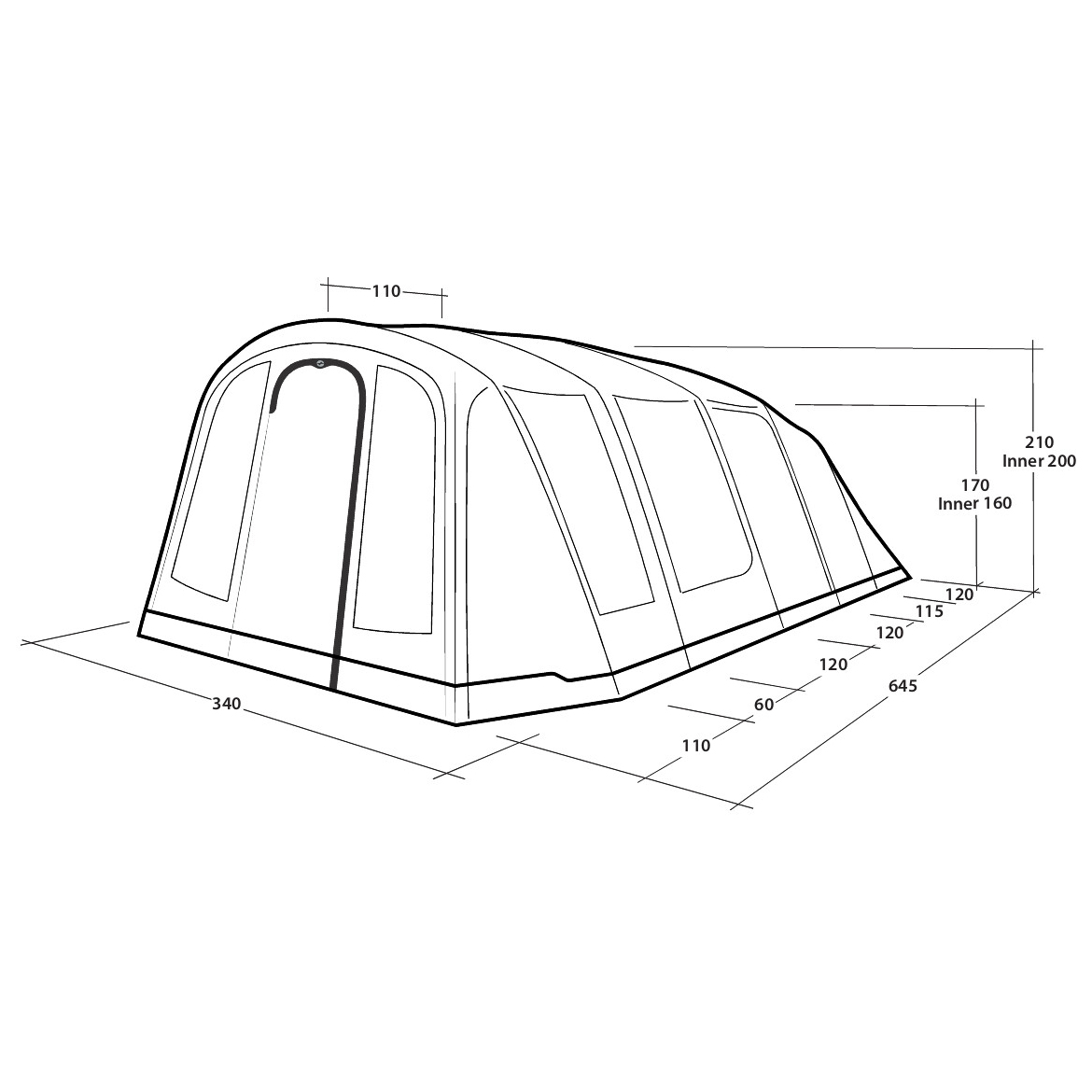 - long. 645 x anch. 340 x alt. 210 cm