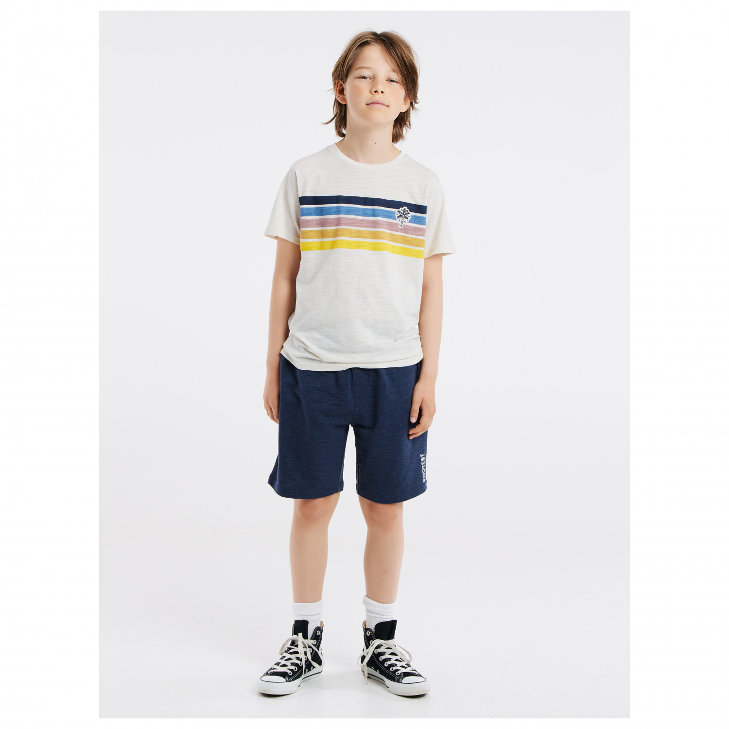 - estampado frontal, Parche del logotipo, cuello redondo