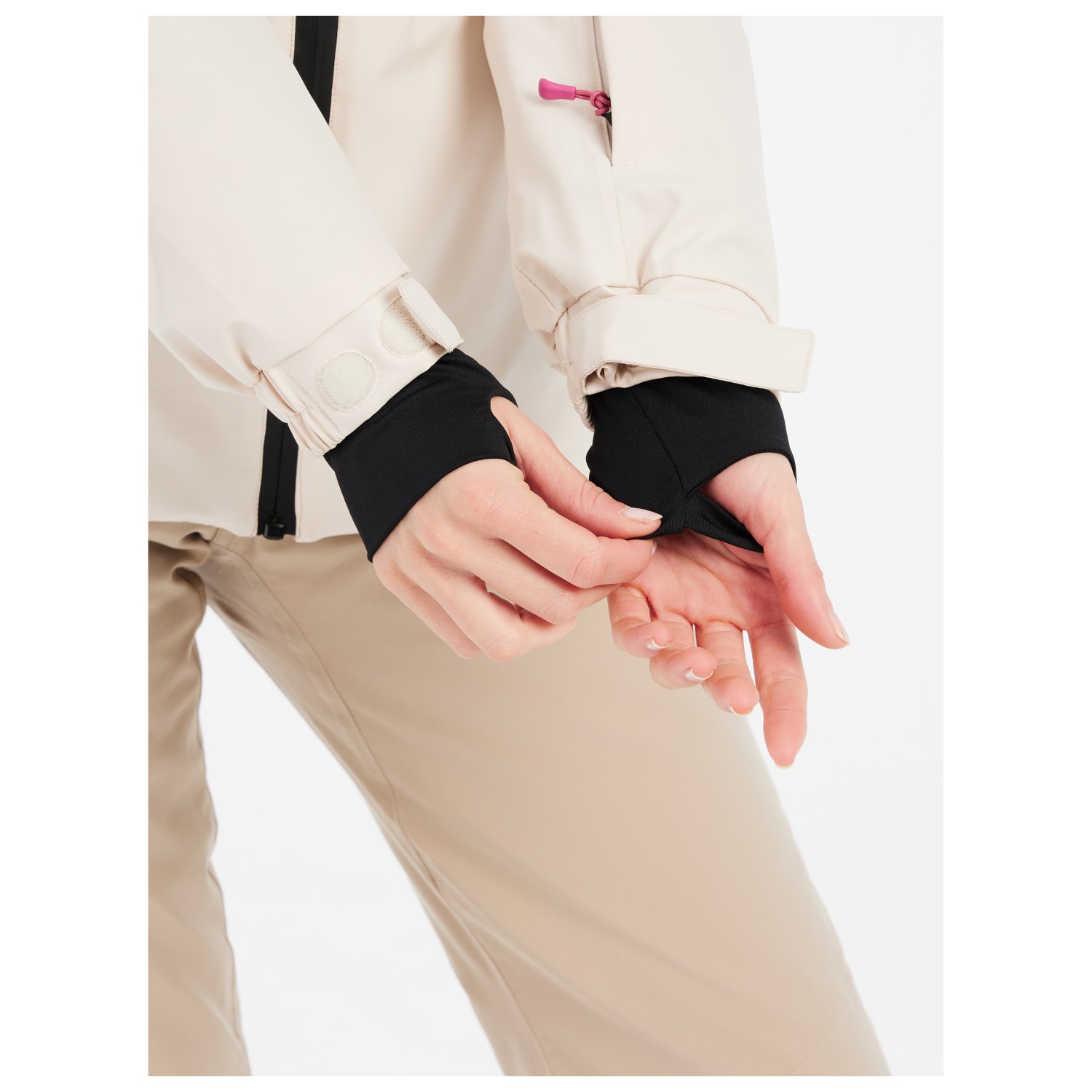 - Cierres de gancho y bucle en las mangas, Faldón para nieve