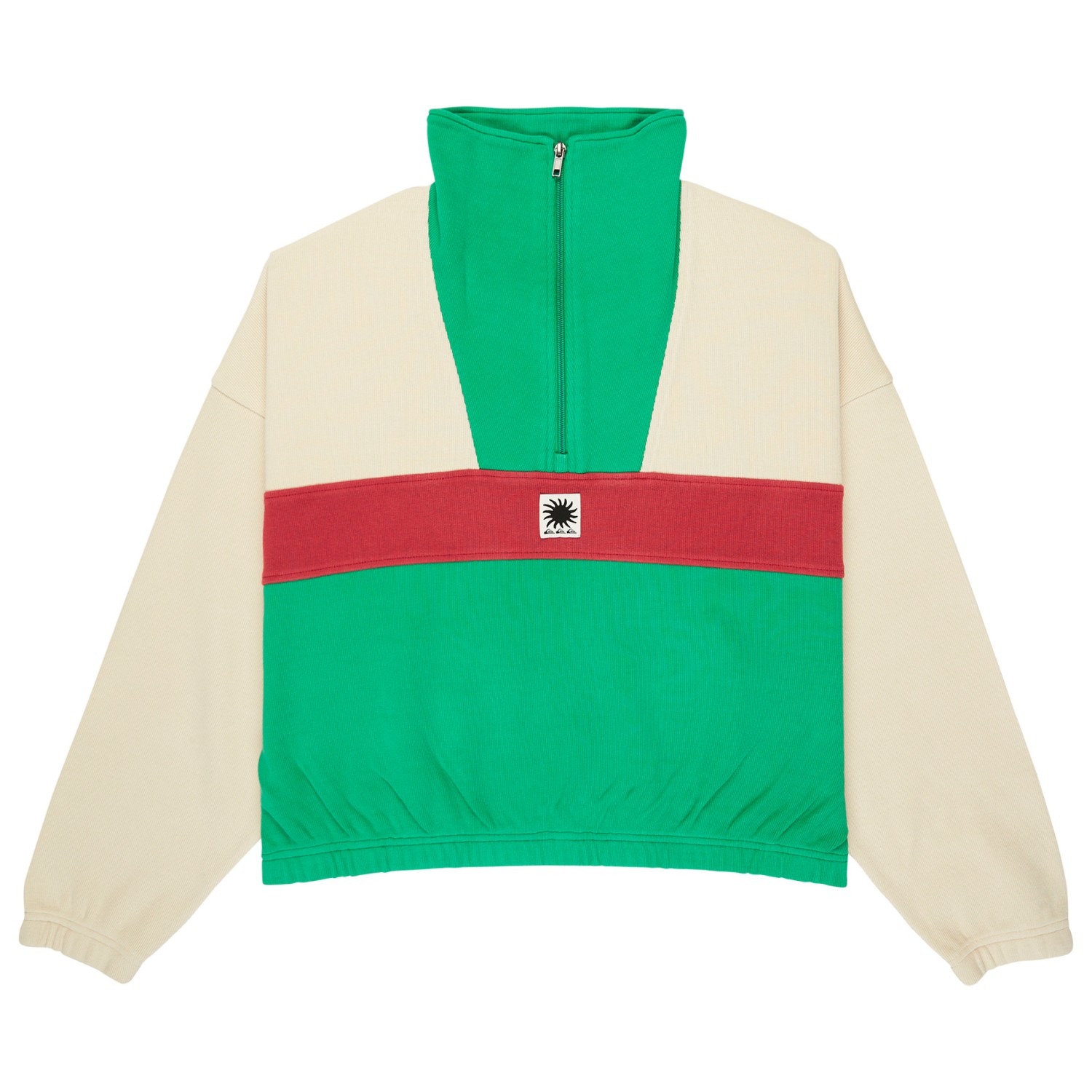 - Cintura elástica, Dobladillo elástico, Parche del logotipo, Cuello alzado