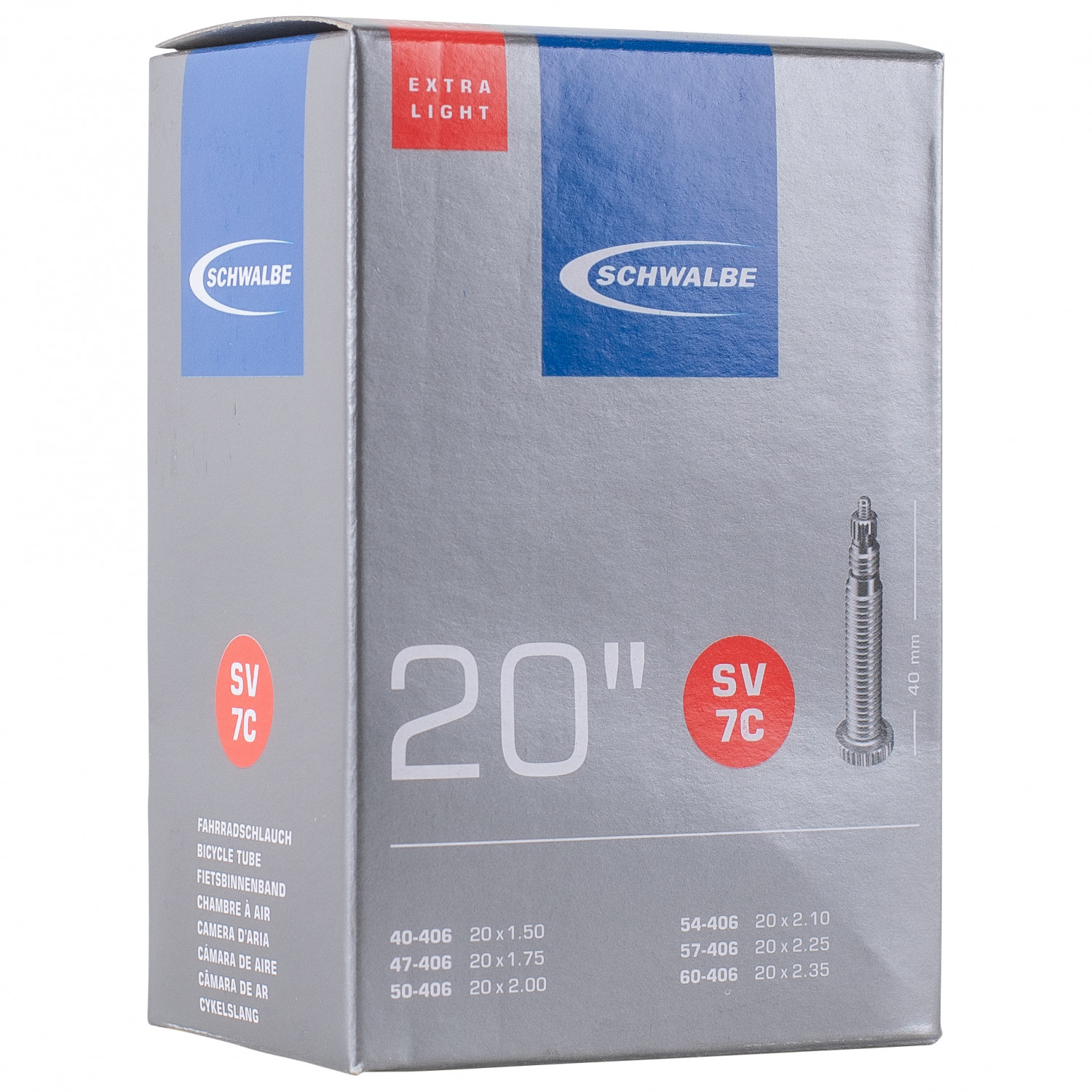 Schwalbe - SV7C Extra Light 20'' (40/60-406) - Cámara para bicicleta