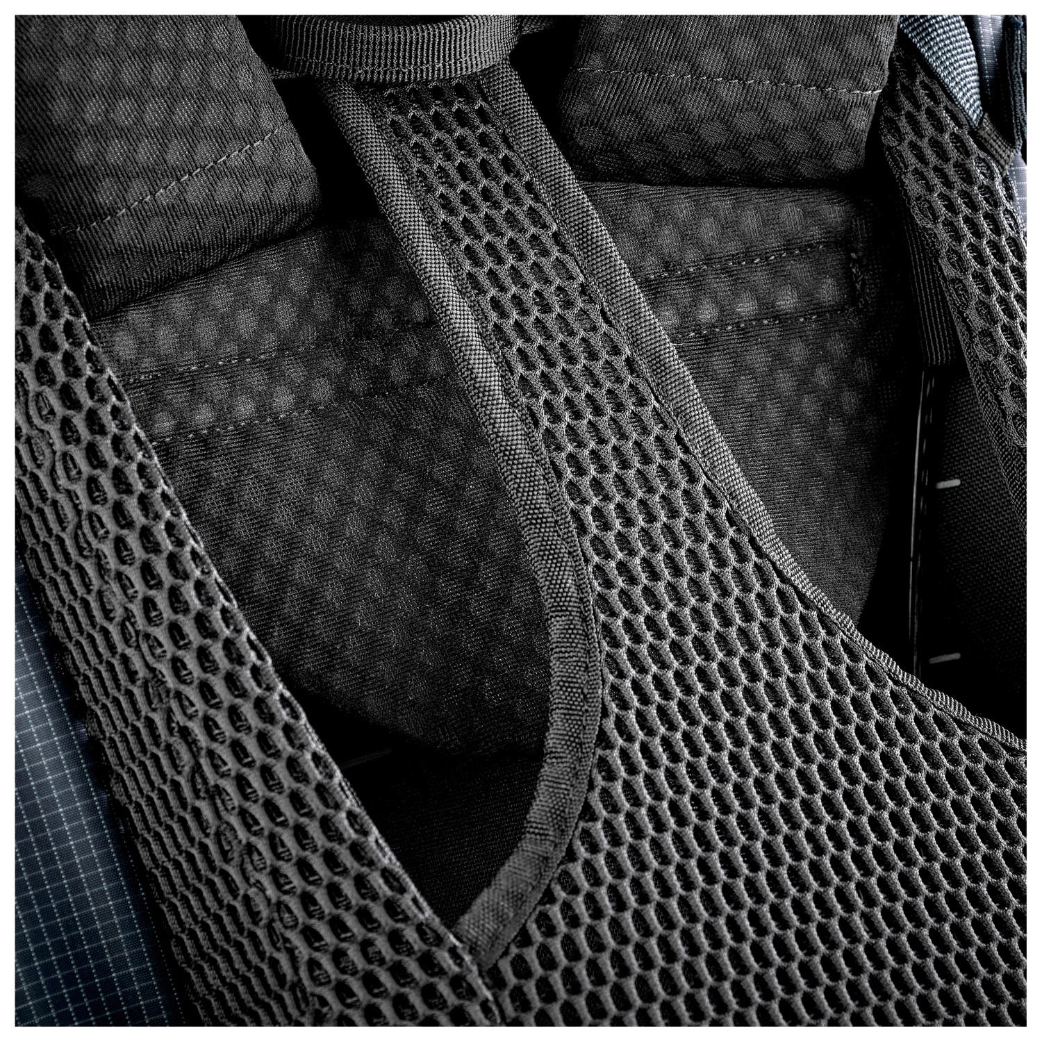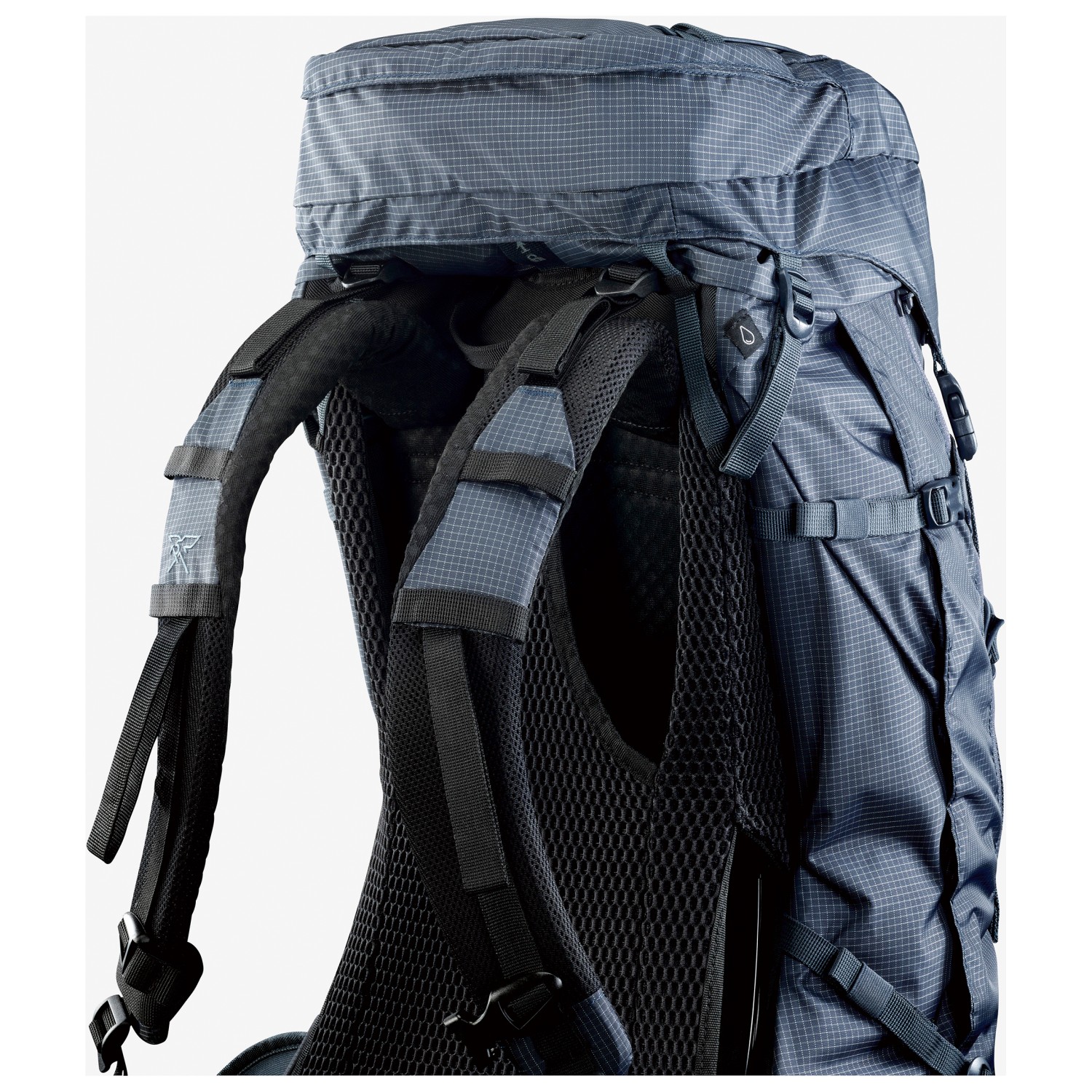 - Bastidor de aluminio, Arnés de pecho, Tirantes acolchados, Cinturón lumbar acolchado, Espalda de malla