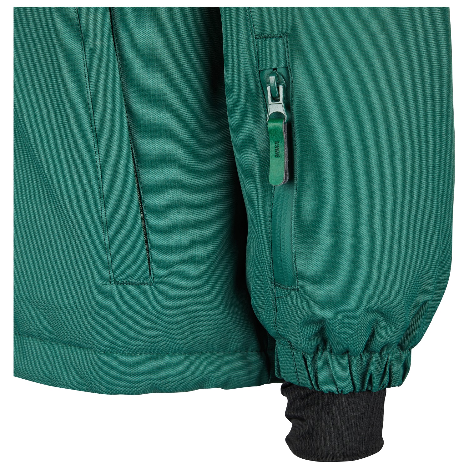 - Puños elásticos, Cordón de ajuste en el dobladillo, detalles reflectantes, Faldón para nieve