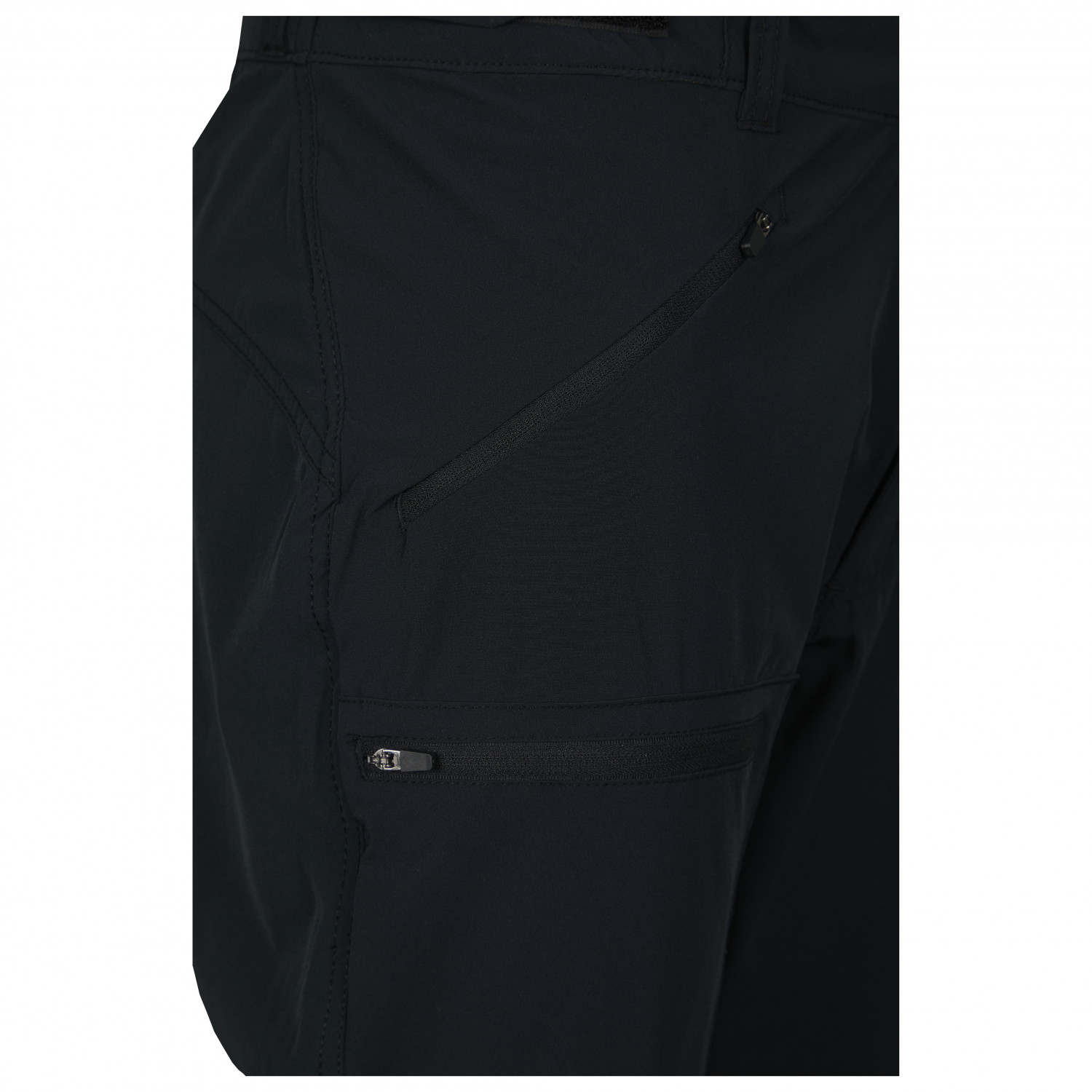- 1 bolsillo en la pierna con cremallera, 2 bolsillos delanteros con cremallera