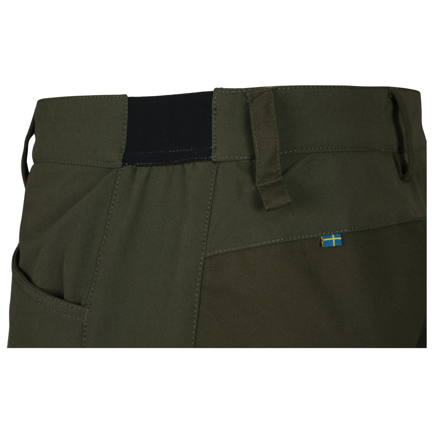- Cintura elástica, Presillas para cinturón, parche del logotipo de cuero sintético