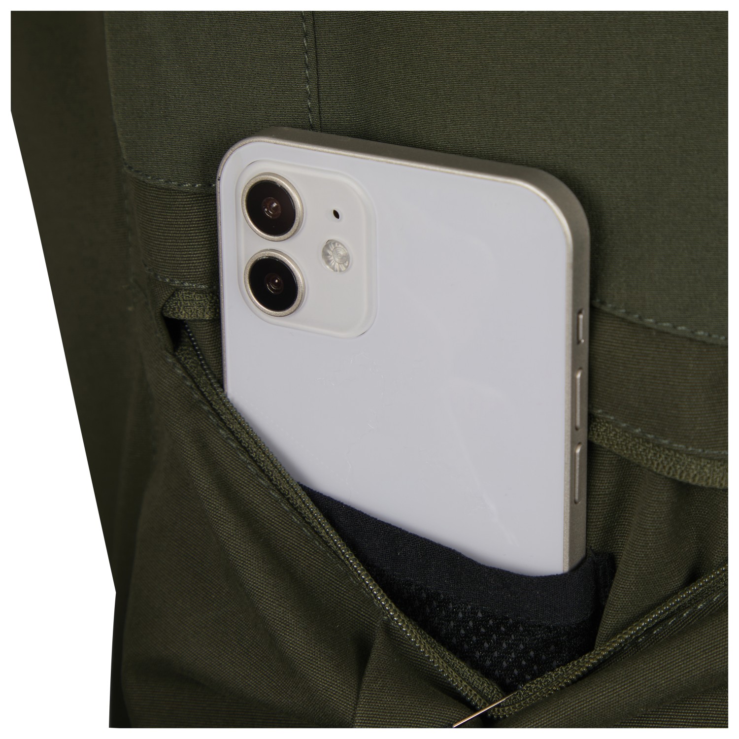 - 1 bolsillo interior de malla, 2 bolsillos delanteros, 2 bolsillos en las piernas con cremallera