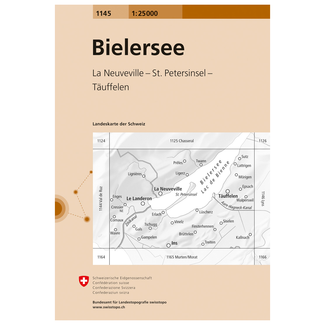 Swisstopo - 1145 Bielersee - Mapa de senderos