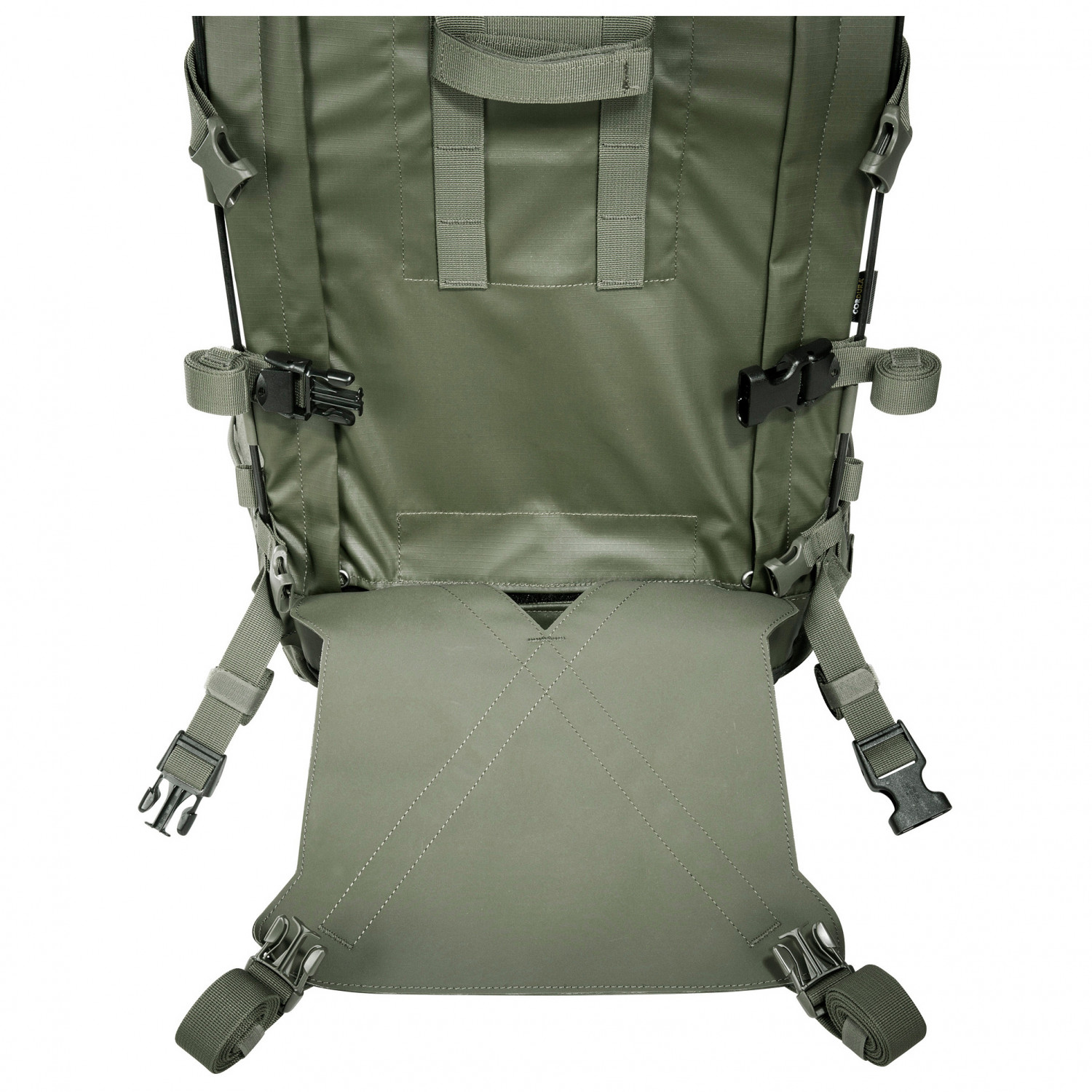 - Arnés de pecho, Tirantes acolchados, Cinturón lumbar acolchado, Espalda acolchada, Correas de control de la carga, con asa de transporte, largo de la espalda regulable, Marco en X