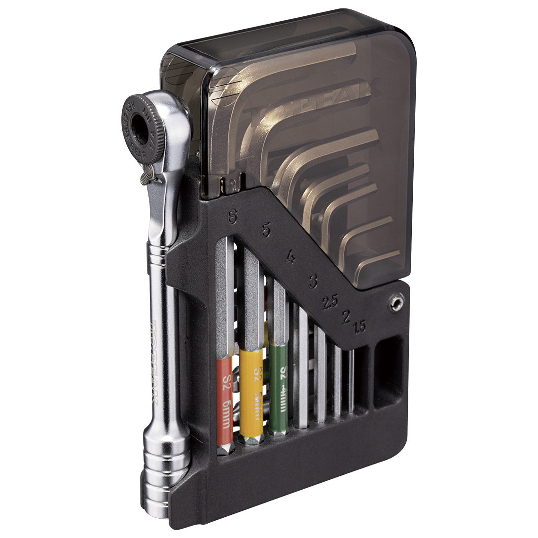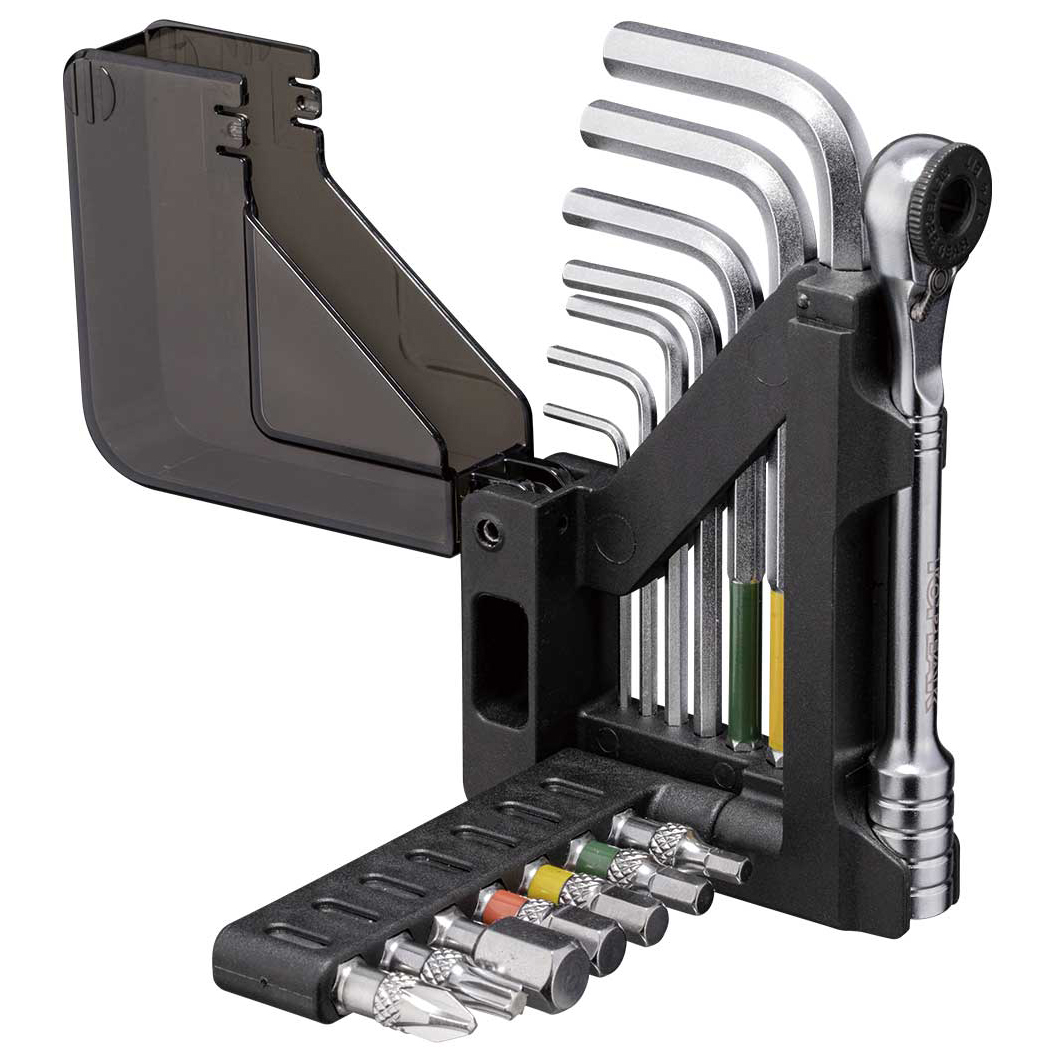 - llave Allen (1,5; 2; 2,5; 3; 4; 5; 6 mm); punta Torx T25; puntas de hexágono interior (3; 4; 5; 6; 8 mm); destornillador