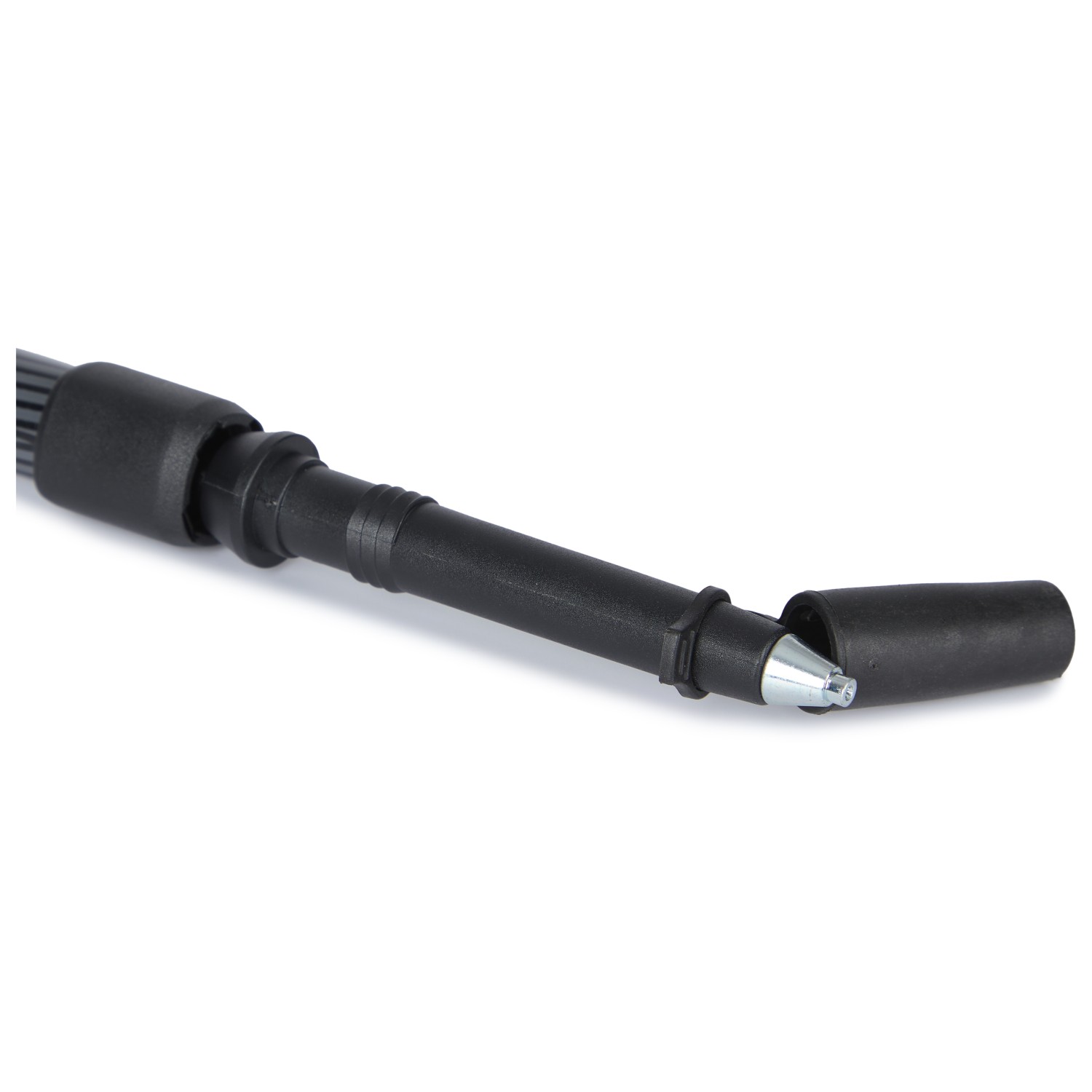 - fijación Quick-Fit; bastón telescópico: 2 partes, de aluminio 6000 ligero con roseta grande y punta de acero, ajustable 105-130 cm