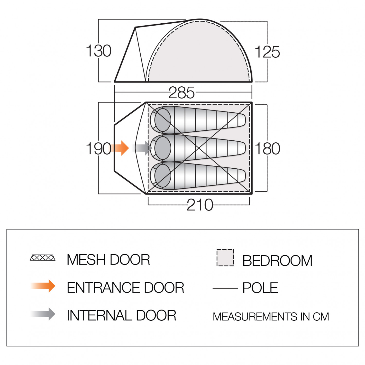 - 285 x 190 x 130 cm (long. x anch. x alt.)